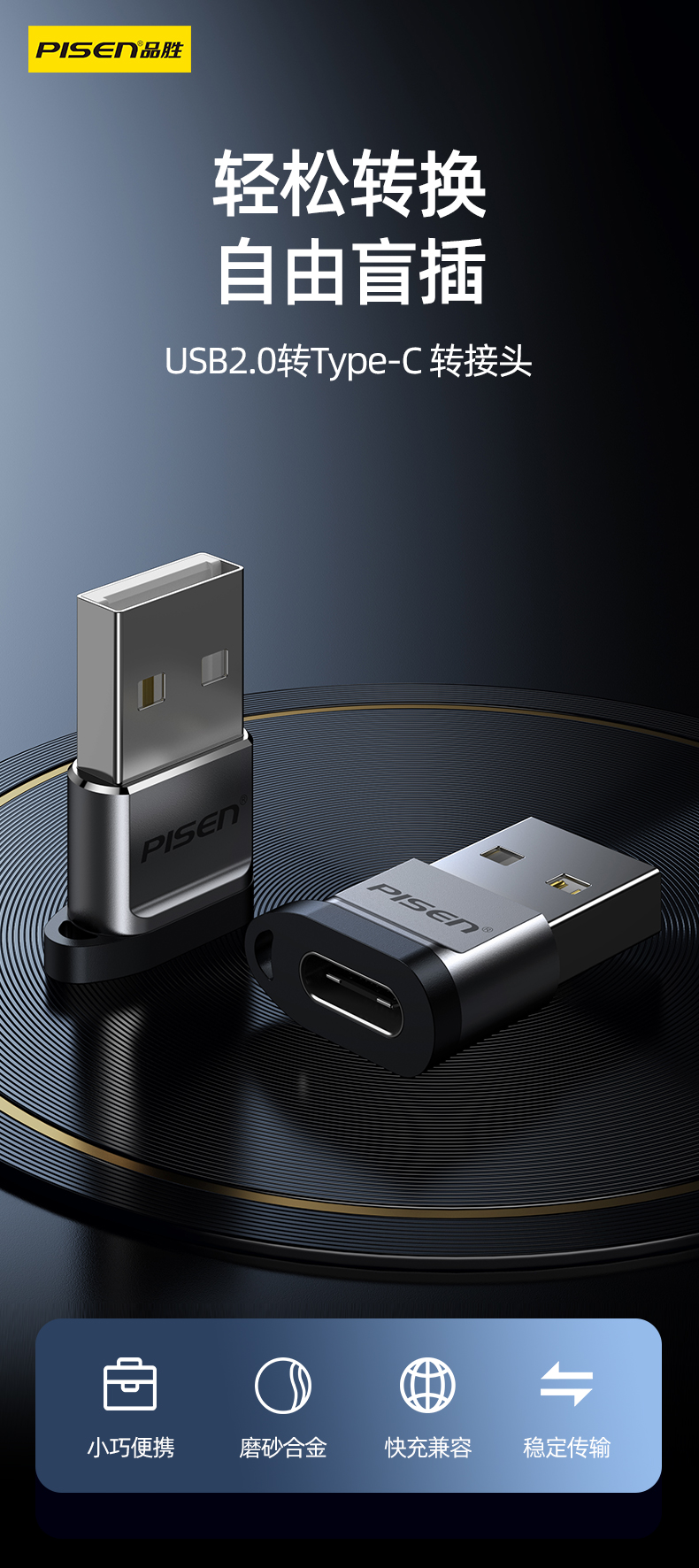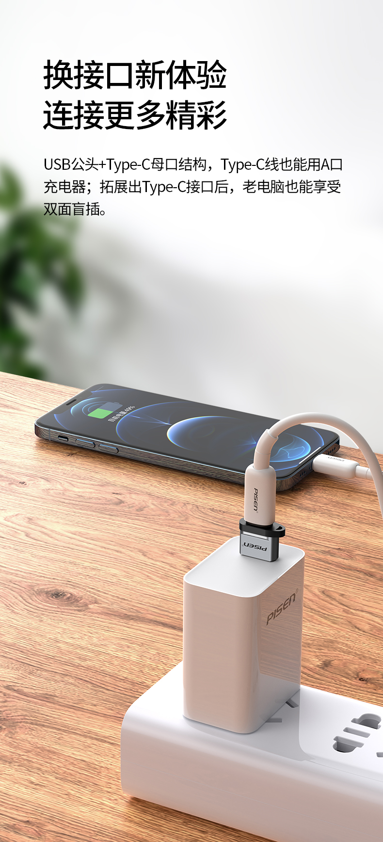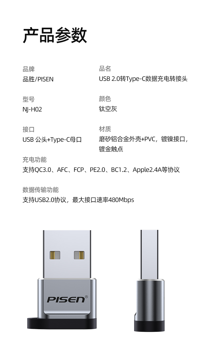 品胜 USB2.0转Type-C数据充电转接头 数据线转换器 秒变PD线