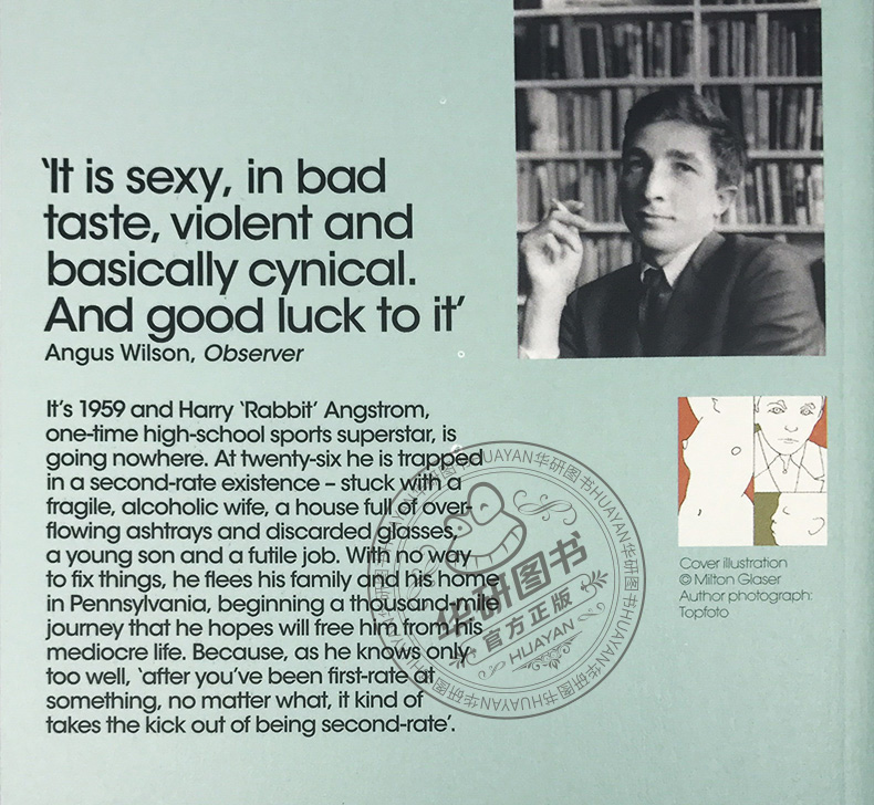 Rabbit, Run《兔子,跑吧》是厄普代克的代表作“兔子四部曲”系列的第1部,也是奠定厄普代克文学成就的重要作品。“兔子四部曲”历时三十年创作完成,全套书紧密贯通,似一气呵成,每一部又可单独成篇,共塑造了约一百五十个大小不等的鲜活人物,因此成为全面展示美国中产阶级生活图景、深刻探索美国中产阶级灵魂现状和救赎的史诗性巨著。 媒体评论: “光彩夺目又深刻动人,厄普代克以其广大的悲悯、透彻的洞察以及水晶般明亮剔透的文化体,使我们跟兔子一起经历他的所思所想、忧伤悲痛,感同身受。”——《华盛顿邮报》 “精准,优雅,震撼,厄普代克真是位语言和形象的大师,同时又是思想和情感完美的洞悉者。”——《乡村之声》 The first book in his award-winning 'Rabbit' series, John Updike's Rabbit, Run contains an afterword by the author in Penguin Modern Classics. It's 1959 and Harry 'Rabbit' Angstrom, one time high school sports superstar, is going nowhere. At twenty-six he is trapped in a second-rate existence - stuck with a fragile, alcoholic wife, a house full of overflowing ashtrays and discarded glasses, a young son and a futile job. With no way to fix things, he resolves to flee from his family and his home in Pennsylvania, beginning a thousand-mile journey that he hopes will free him from his mediocre life. Because, as he knows only too well, 'after you've been first-rate at something, no matter what, it kind of takes the kick out of being second-rate'. Review 'It is sexy, in bad taste, violent and basically cynical. And good luck to it' --Angus Wilson, Observer 'That special polish, that brilliance; Updike is among the best'--Malcolm Bradbury 'Brilliant and poignant ... By his compassion, clarity of insight, and crystal-bright rose, [Updike] makes Rabbit's sorrow his and our own'--Washington Post