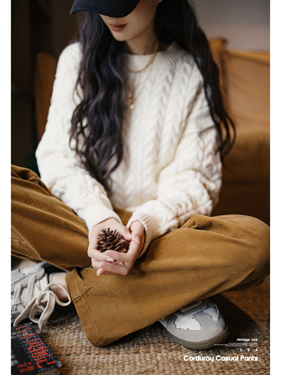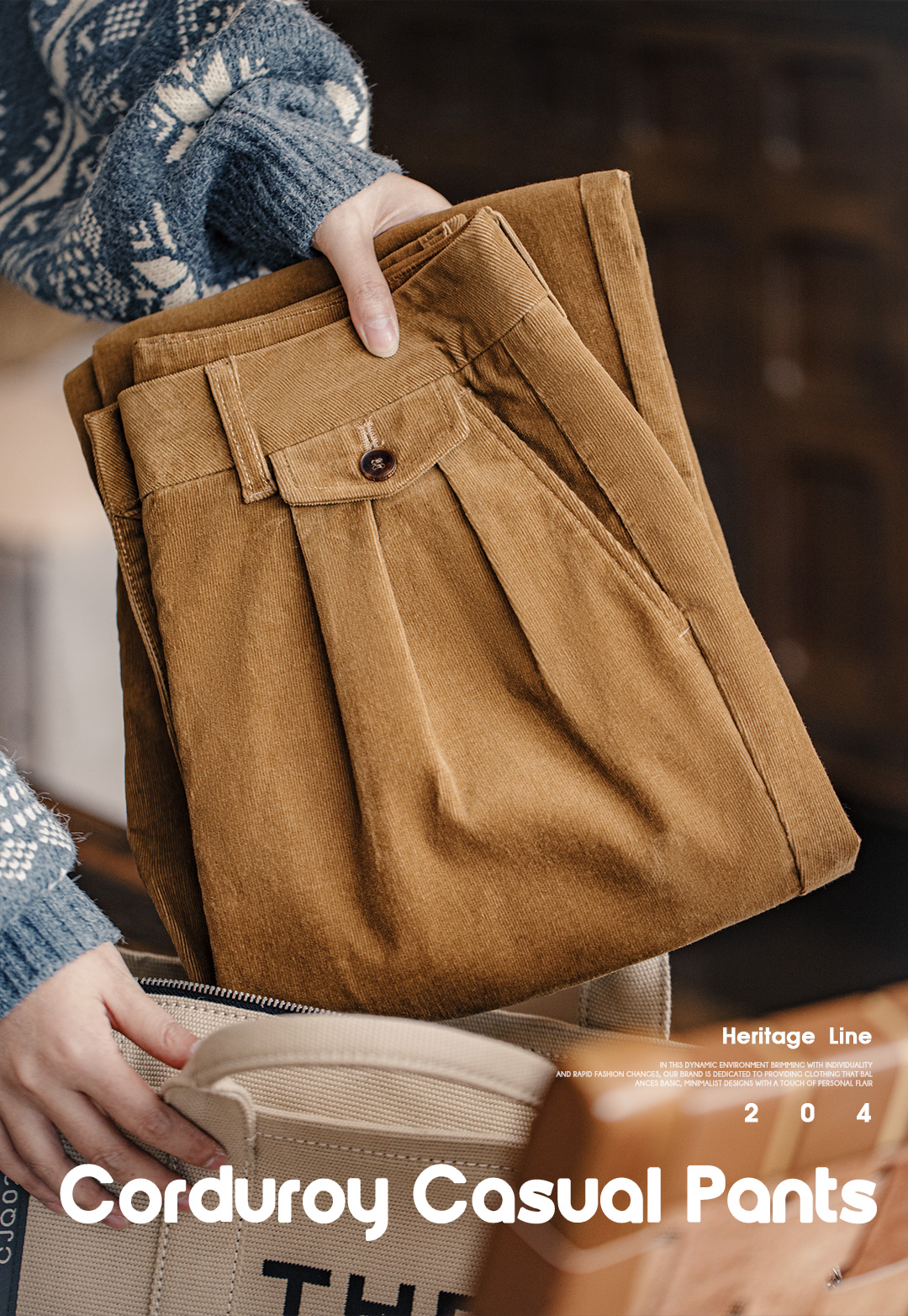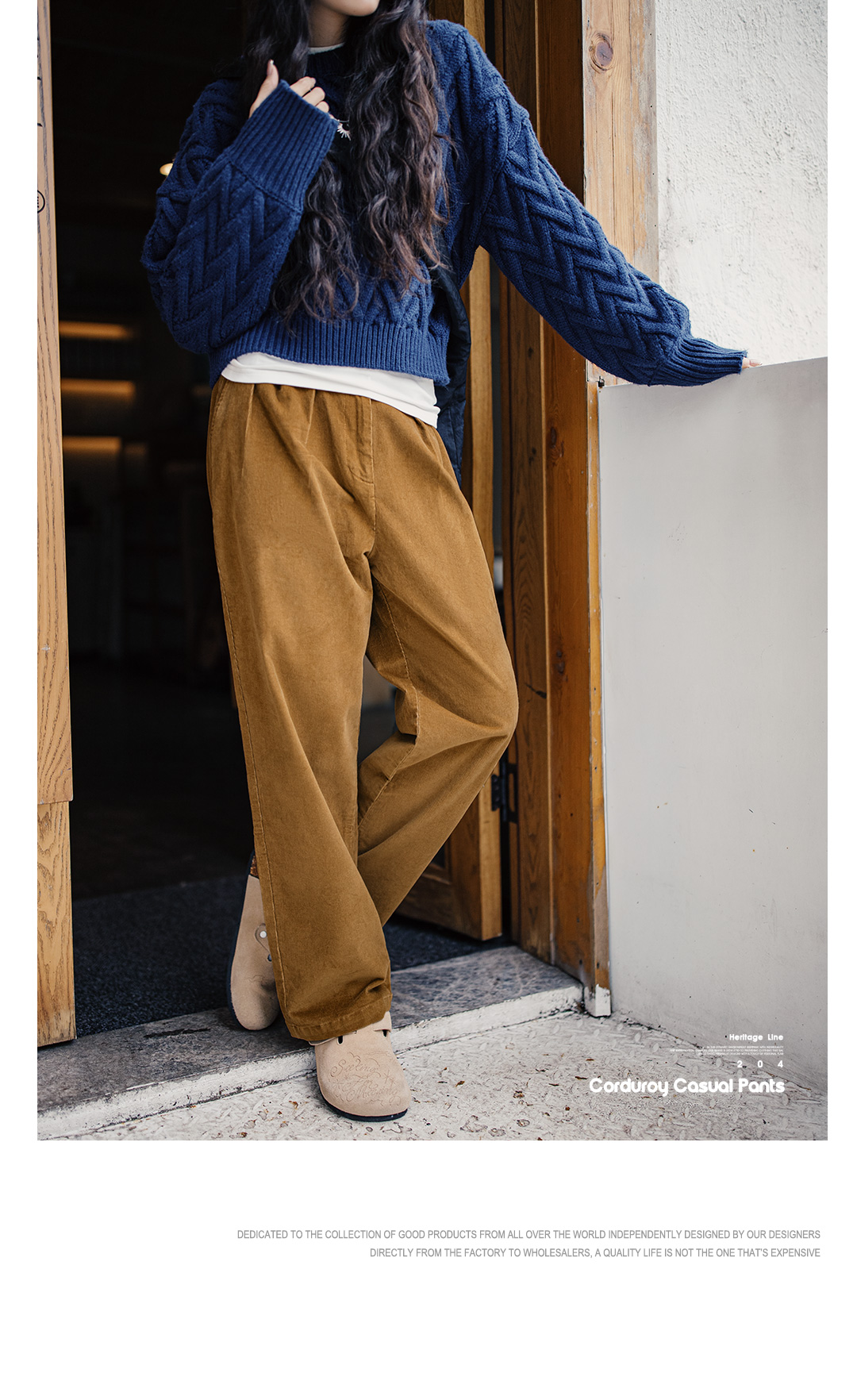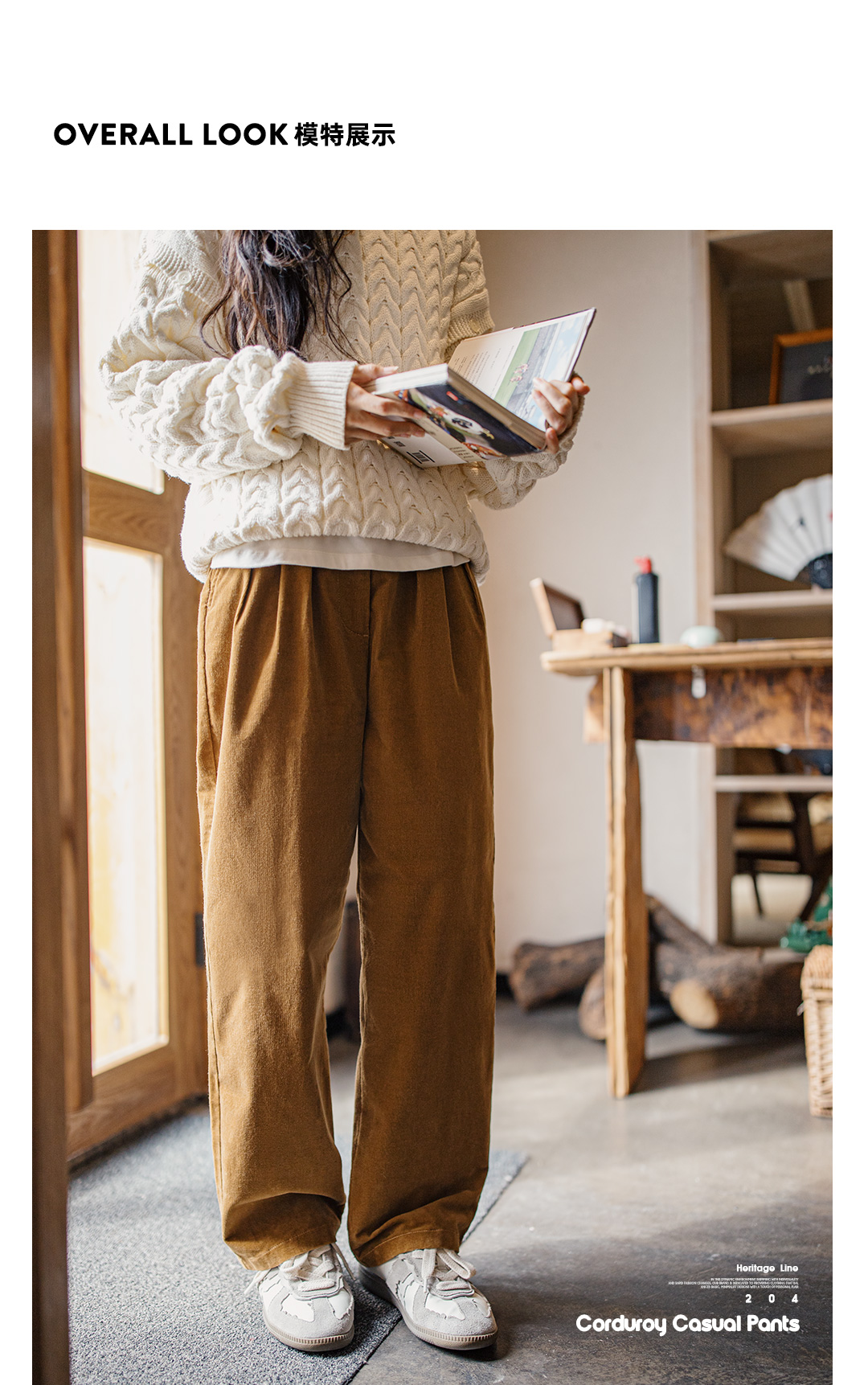 马登复古VTG灯芯绒休闲裤垂感气球裤百搭显瘦阔腿长裤直筒裤秋女