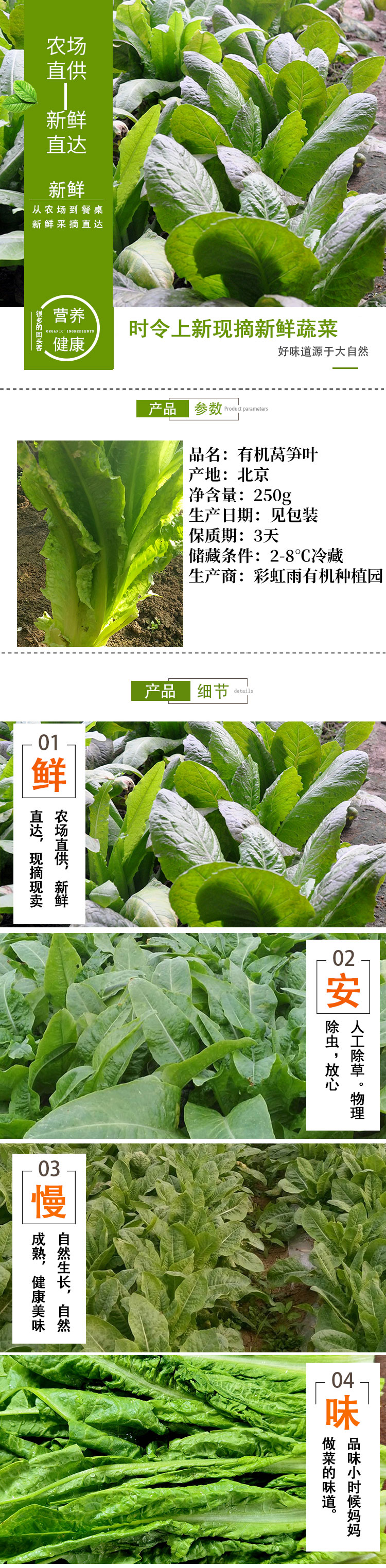 有机蔬菜有机莴笋叶250g 欧盟认证新鲜现摘京津冀满百包邮