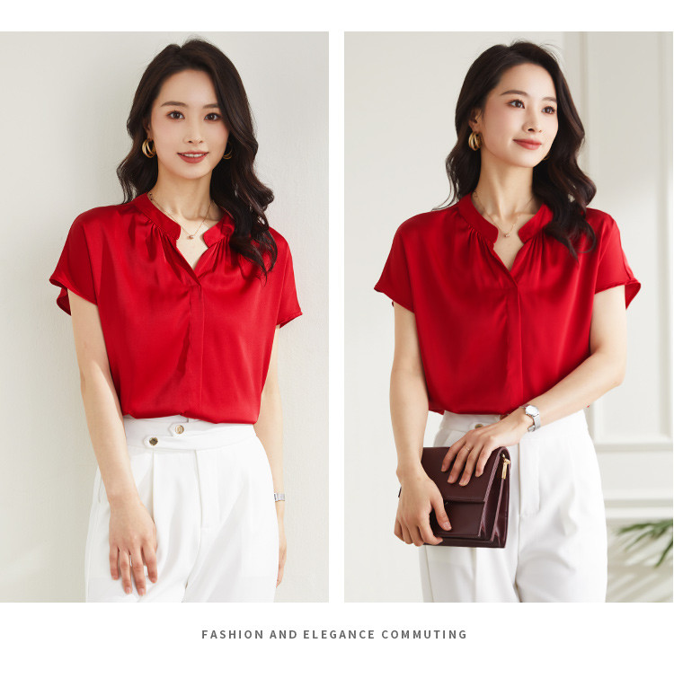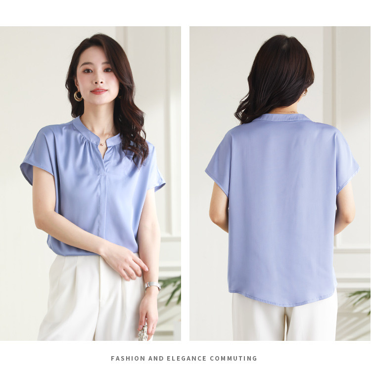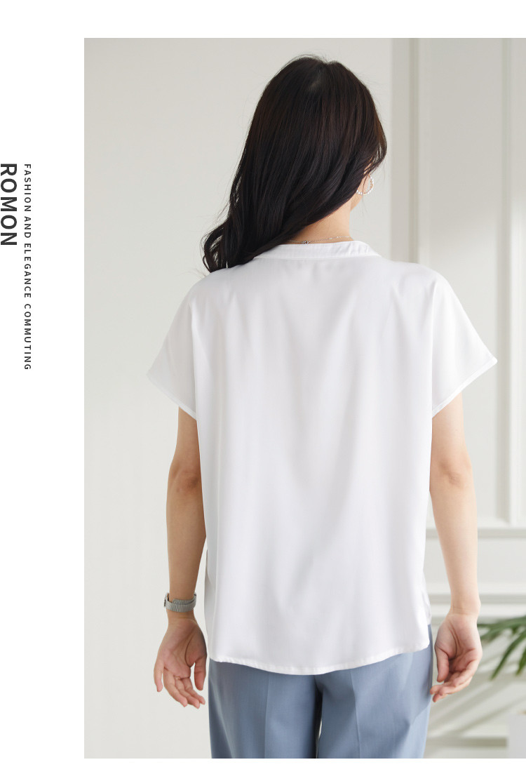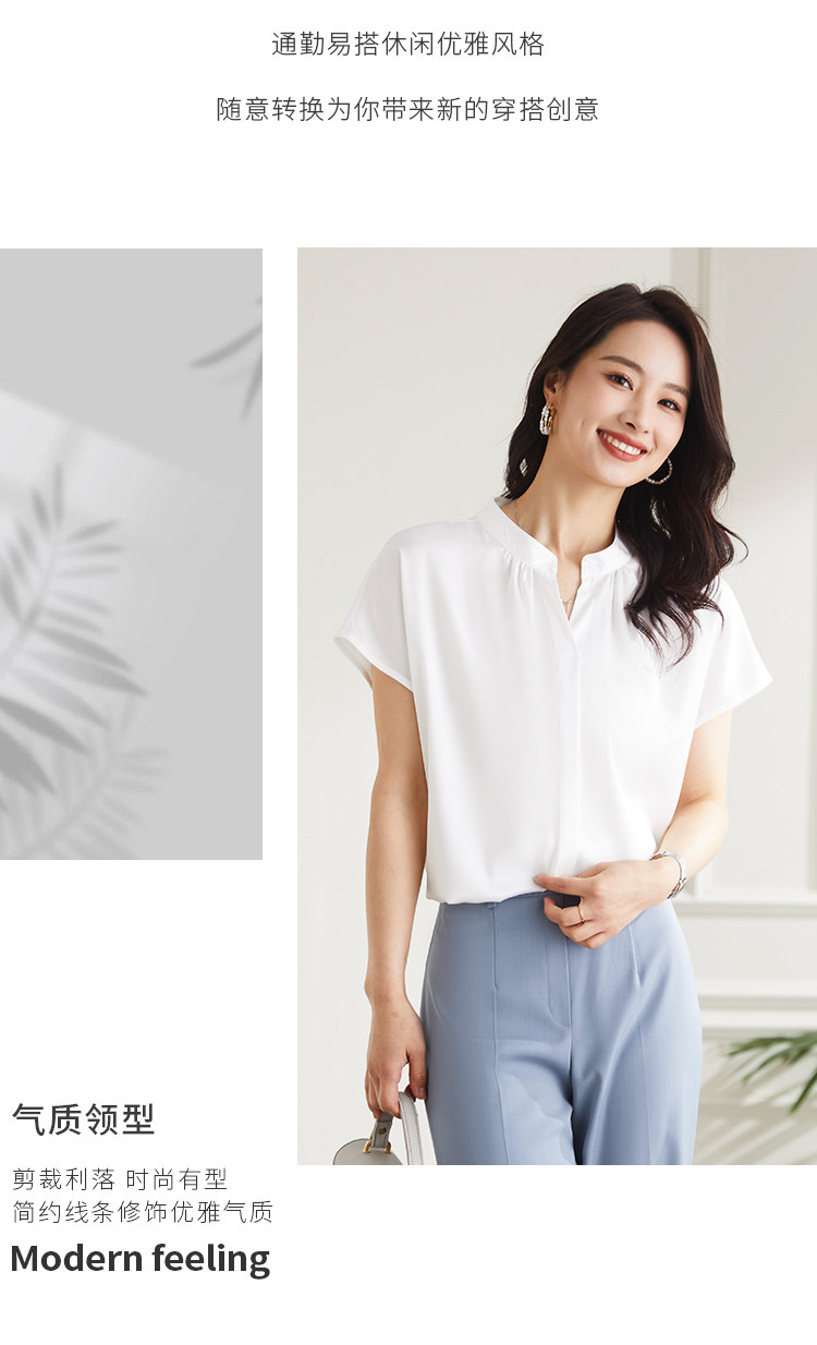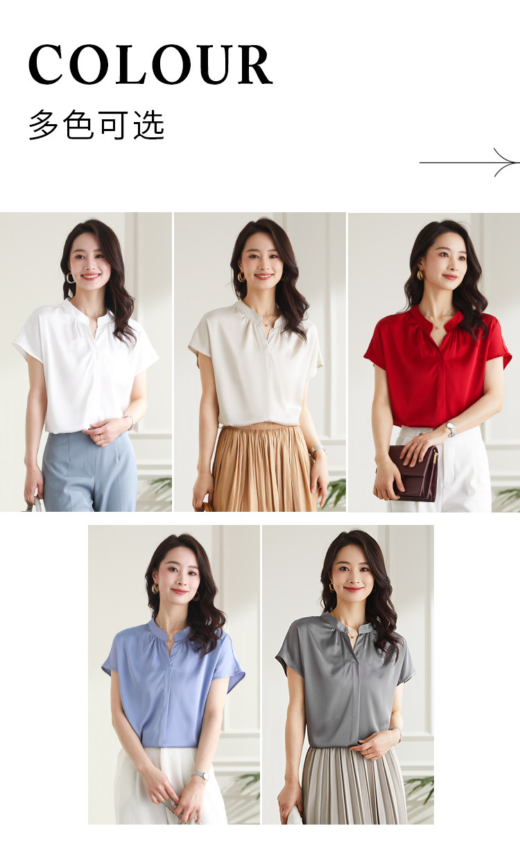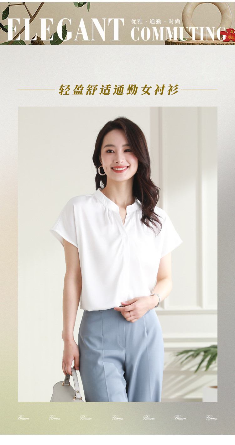 【多色可选】罗蒙夏季轻薄透气微弹力短袖衬衫女士休闲百搭V领短袖衬衣
