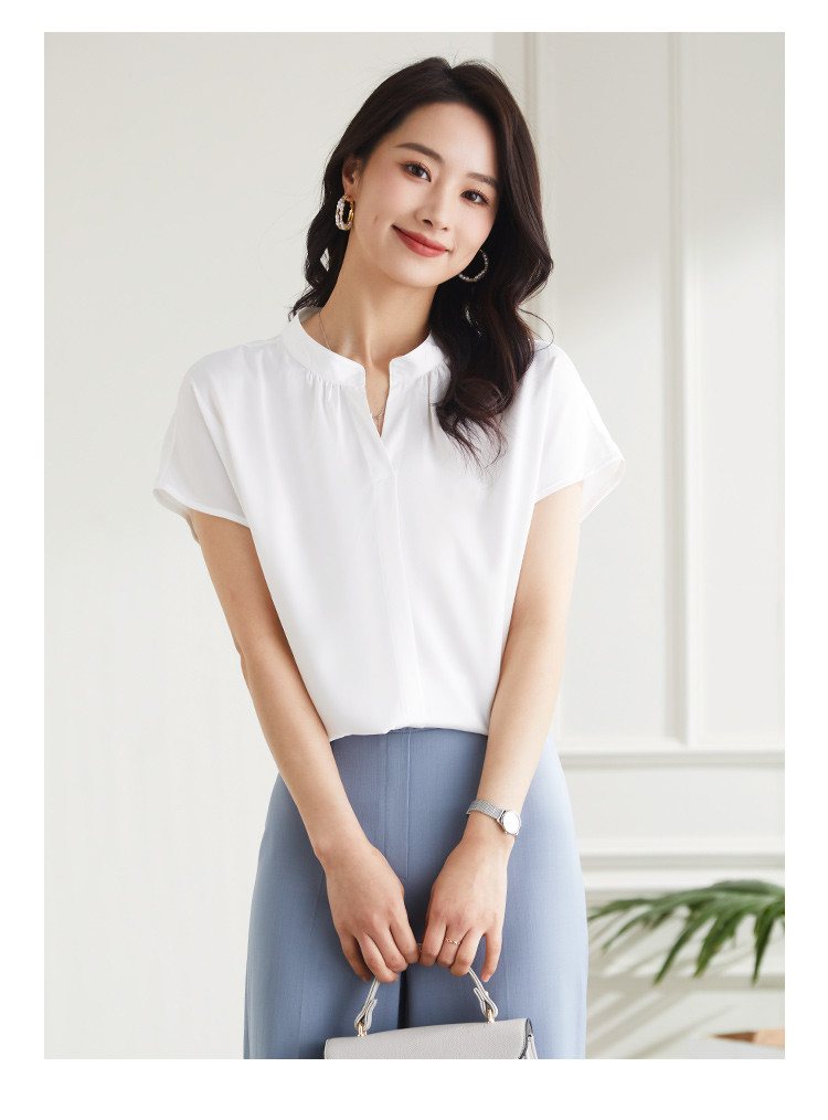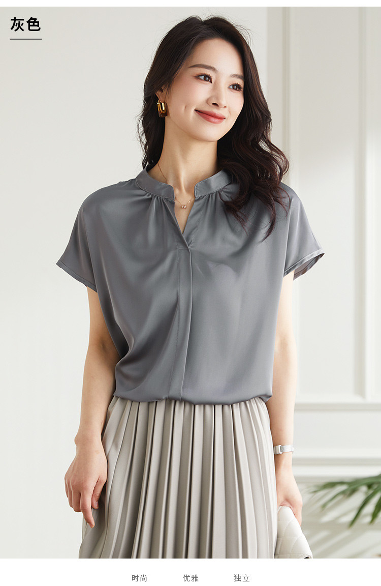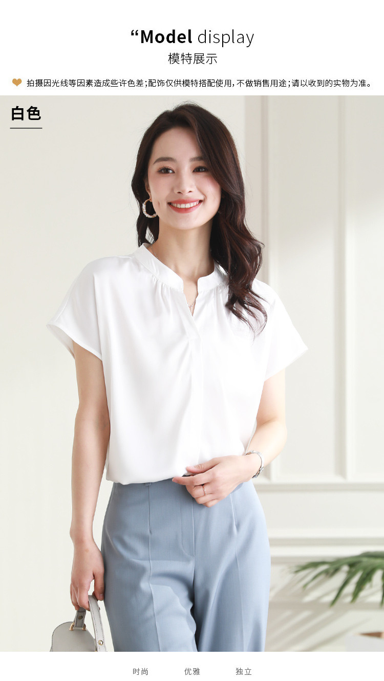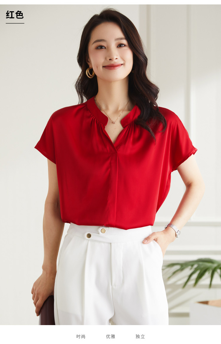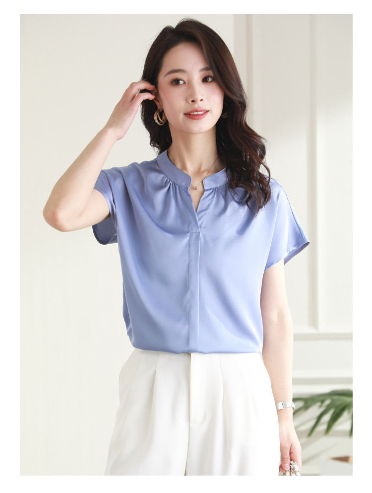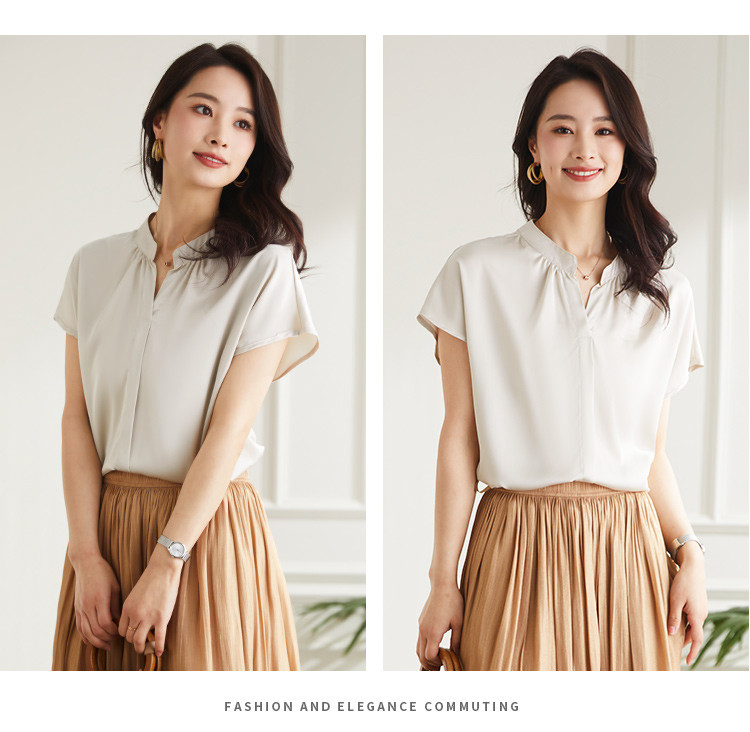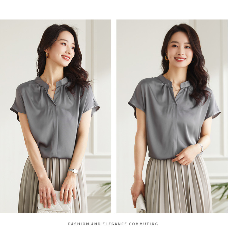 【多色可选】罗蒙夏季轻薄透气微弹力短袖衬衫女士休闲百搭V领短袖衬衣