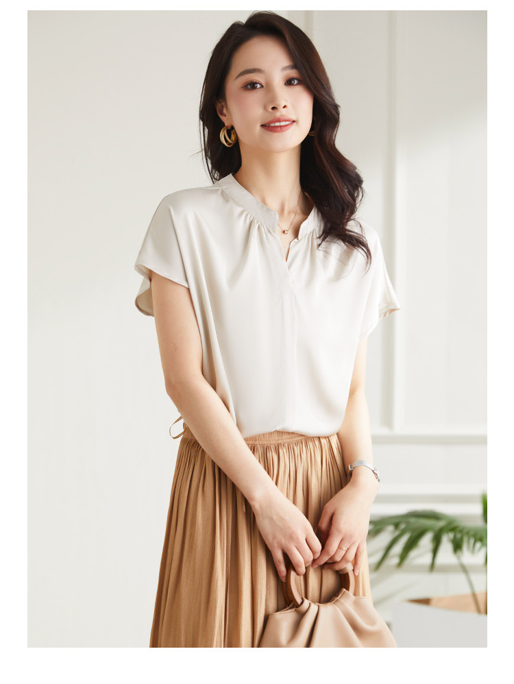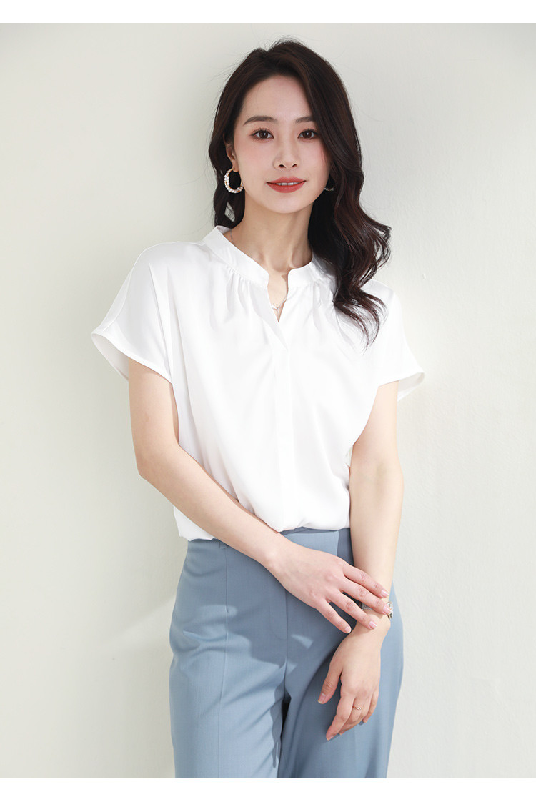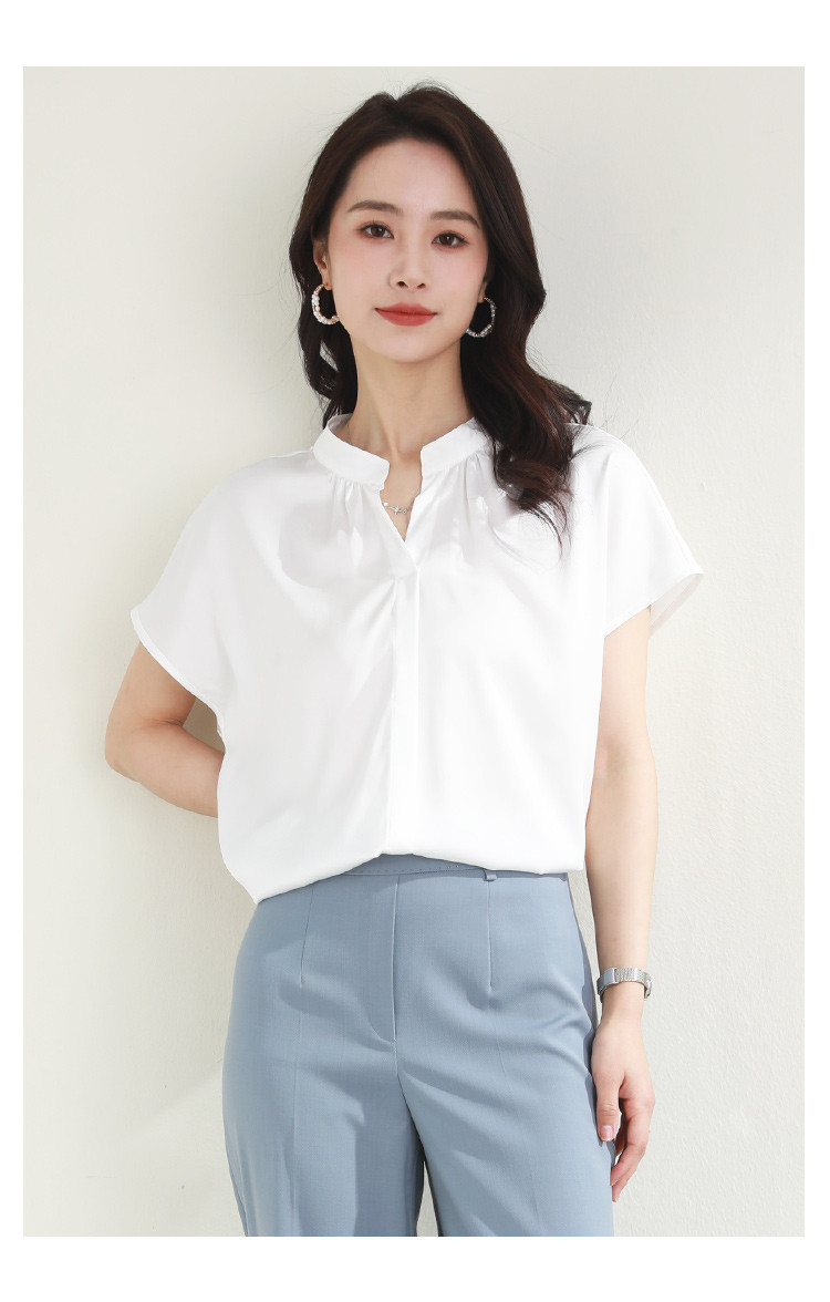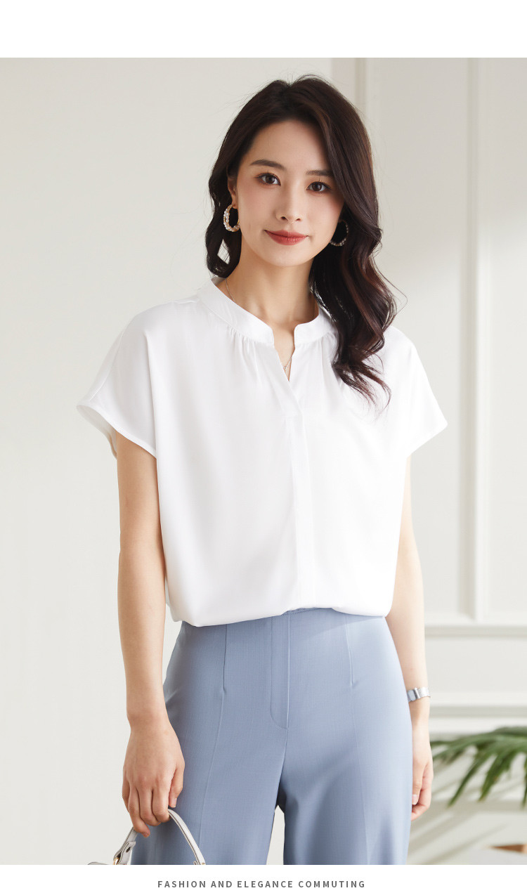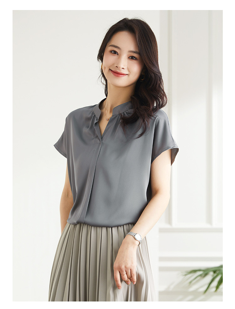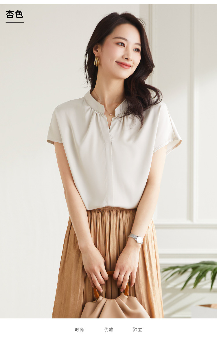 【多色可选】罗蒙夏季轻薄透气微弹力短袖衬衫女士休闲百搭V领短袖衬衣
