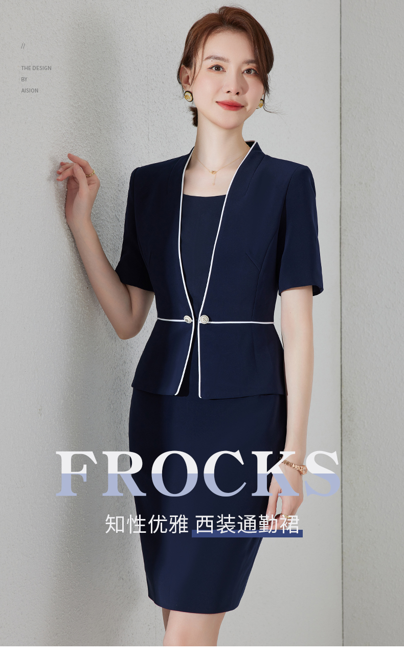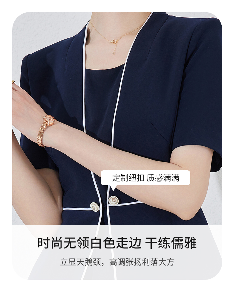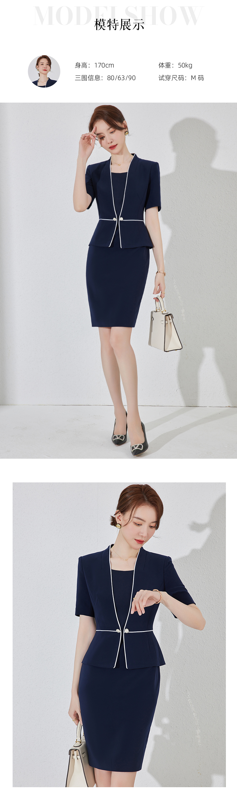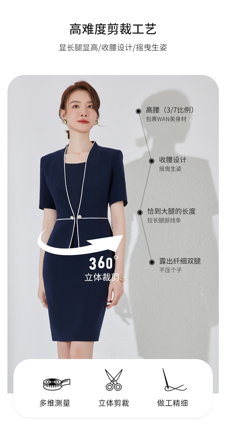藏青色假两件连衣裙女夏职业装高端案场客服工作服通勤套装包臀裙