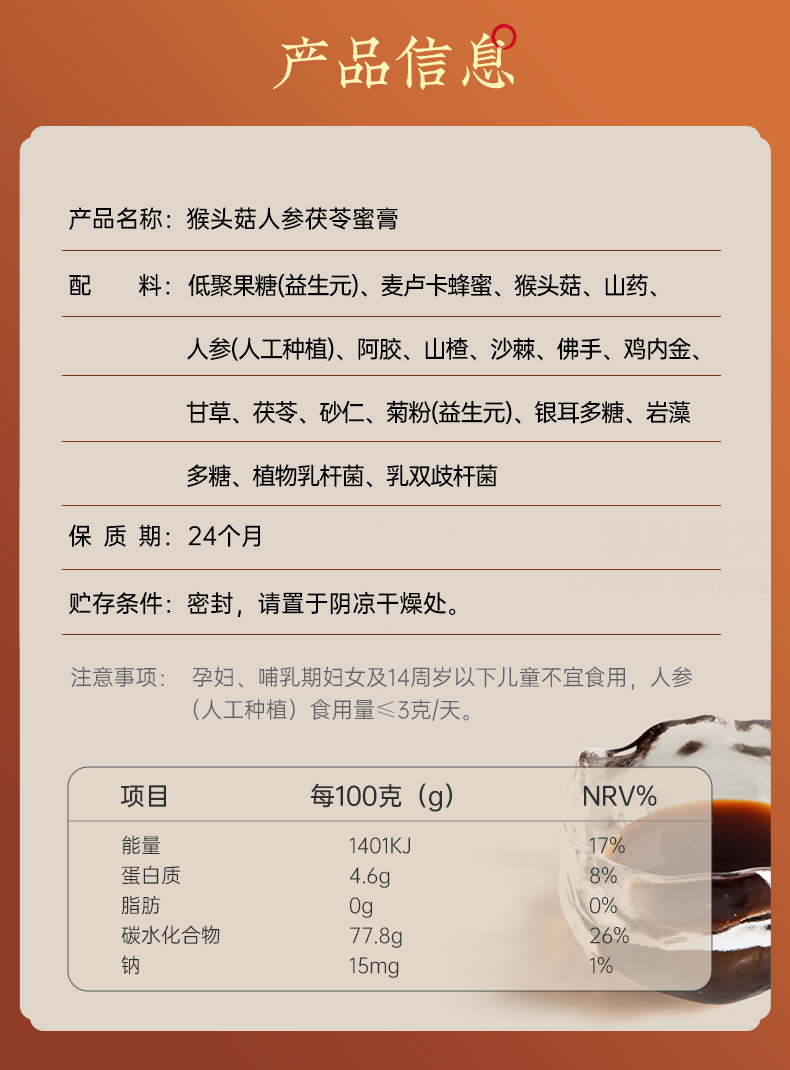 FX杜江南胃膏 猴头菇人参茯苓蜜膏山楂阿胶沙棘蜂蜜膏山楂六物膏