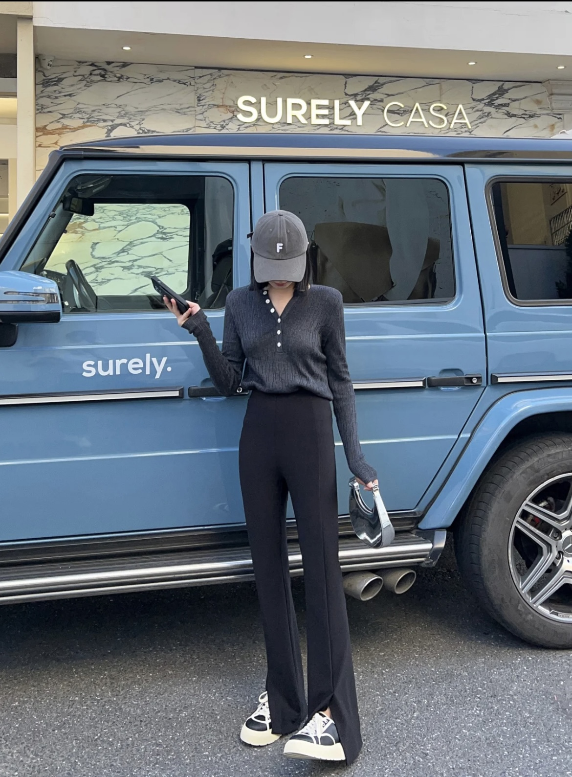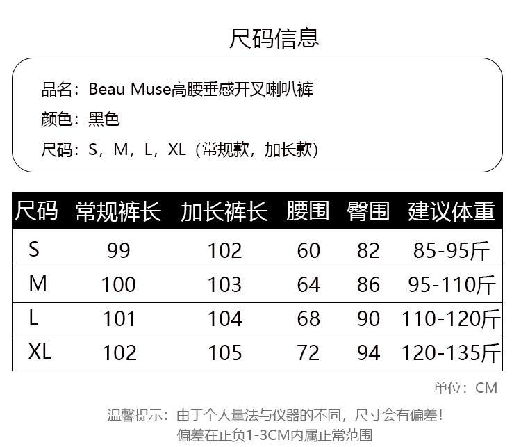Beau Muse 高腰垂感开叉喇叭裤 I 大弹力塑形 收腹显瘦 优化身材比例 包容体重85-135斤【72h内发货】