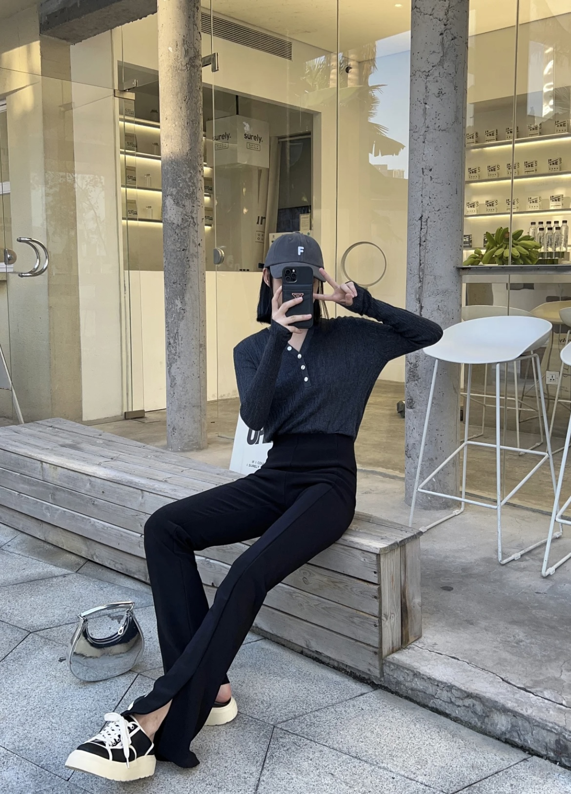 【喇叭裤面料成分】94.8%聚酯纤维,5.2%氨纶