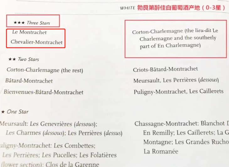 2、骑士蒙哈榭特级园:与蒙哈榭园齐名的三星名园,干白饱满坚实、优雅富有深度、果香与矿石气息兼具