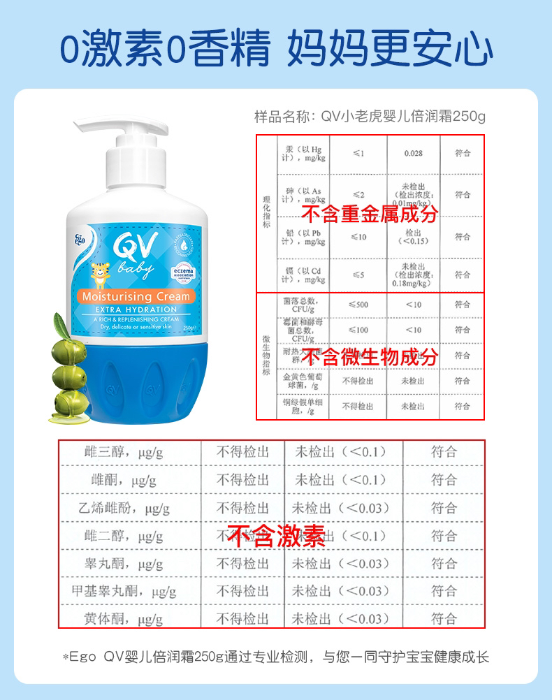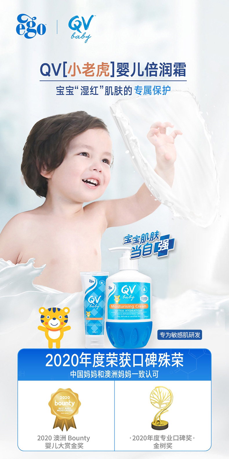 Ego QV 婴儿保湿雪花霜采用纯天然配方,24小时呵护宝宝的柔嫩肌肤,成分更加温和,滋润肌肤,给婴儿稚嫩的肌肤温柔的呵护。宝宝舒服,妈妈的选择。