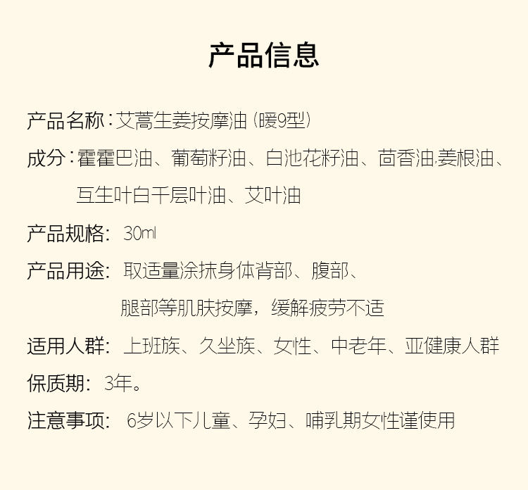 平衡小柅 艾蒿生姜按摩油30ml 暖热