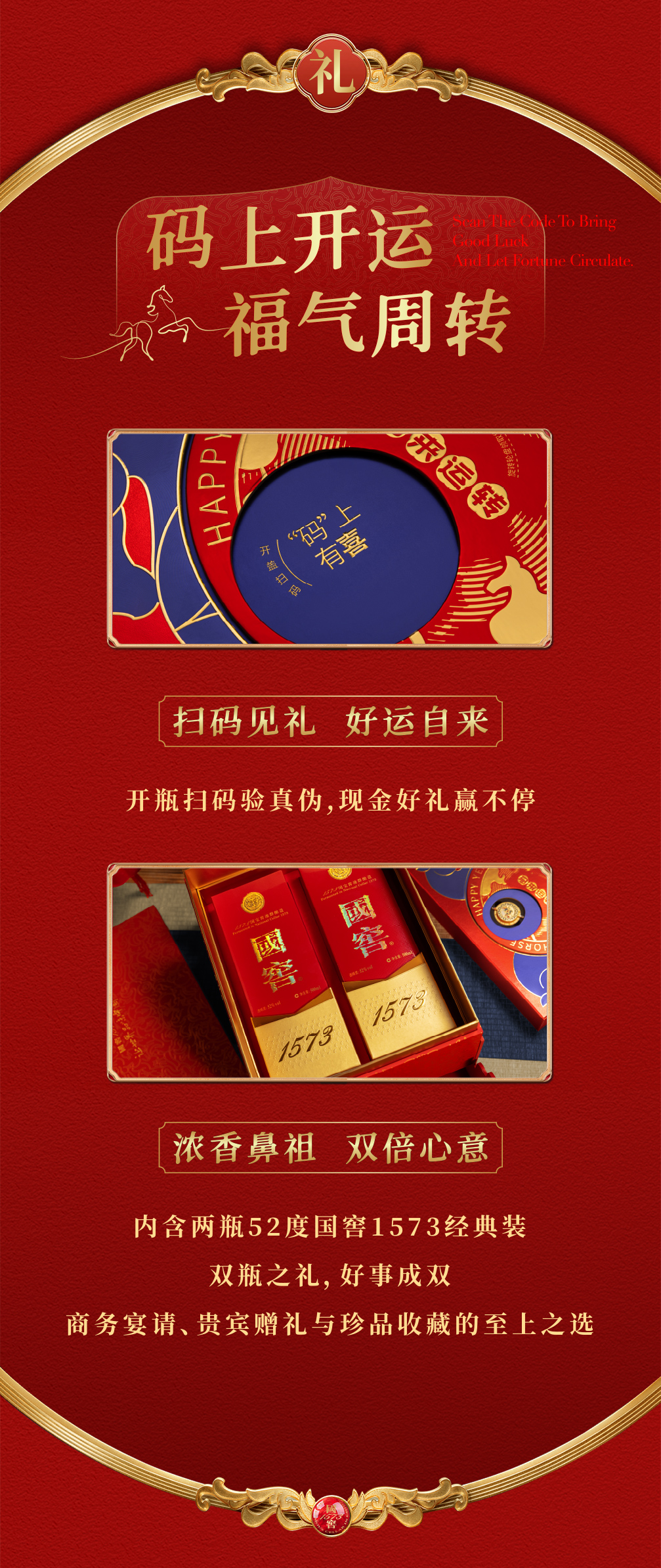 【扫码有好礼】52度国窖1573酒2026丙午马年生肖礼盒套装(马来运转)500ml*2 泸州老窖官方旗舰店