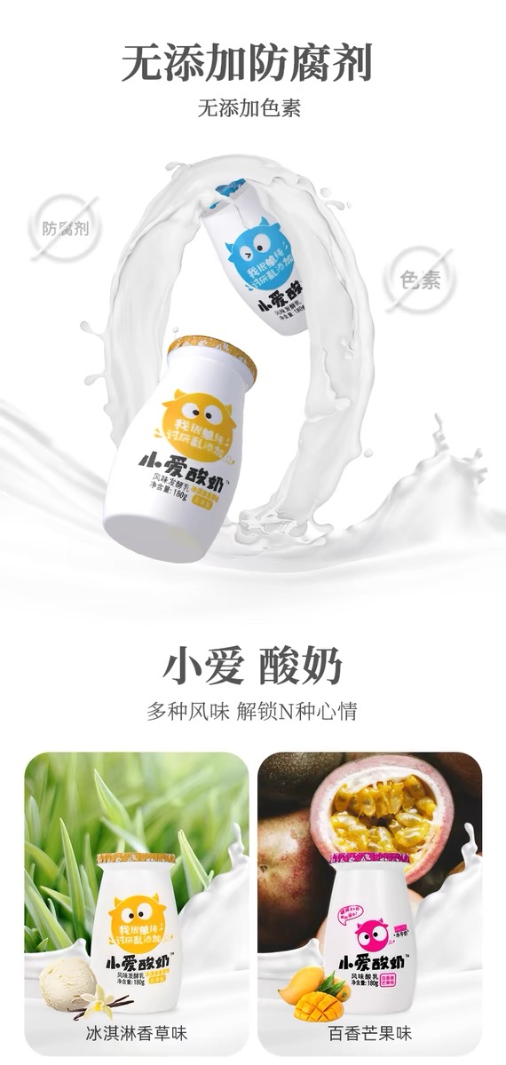 【顺丰包邮】小爱酸奶3种口味-180g*12瓶