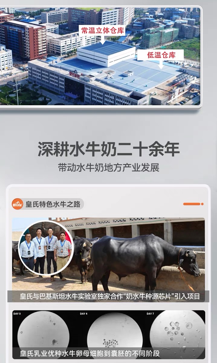 皇氏集团乳业板块主要经营牧草种植、奶牛养殖到乳制品加工、销售的全产业链业务,主要产品以水牛奶、黑白花牛奶为主要原料的巴氏杀菌奶、水牛奶系列,特色果奶、酸奶等业态乳制品和乳饮料。