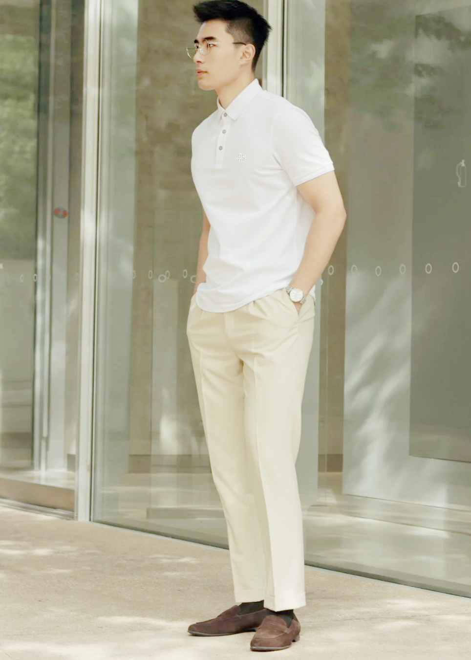 领口处采用三枚系扣设计更方便穿脱左肩设计了传统HH商标元素 在简约大气的风格下又增添了一笔时尚色彩搭配。