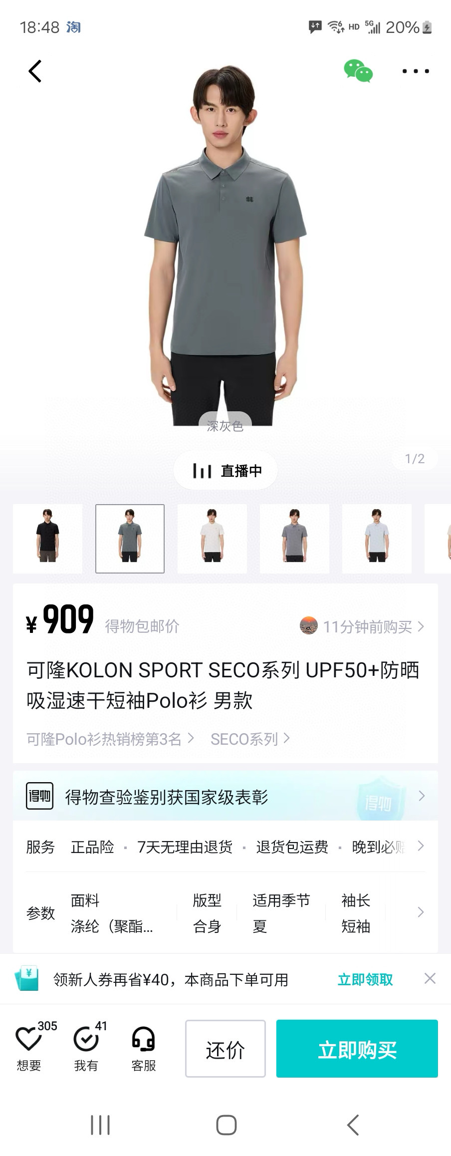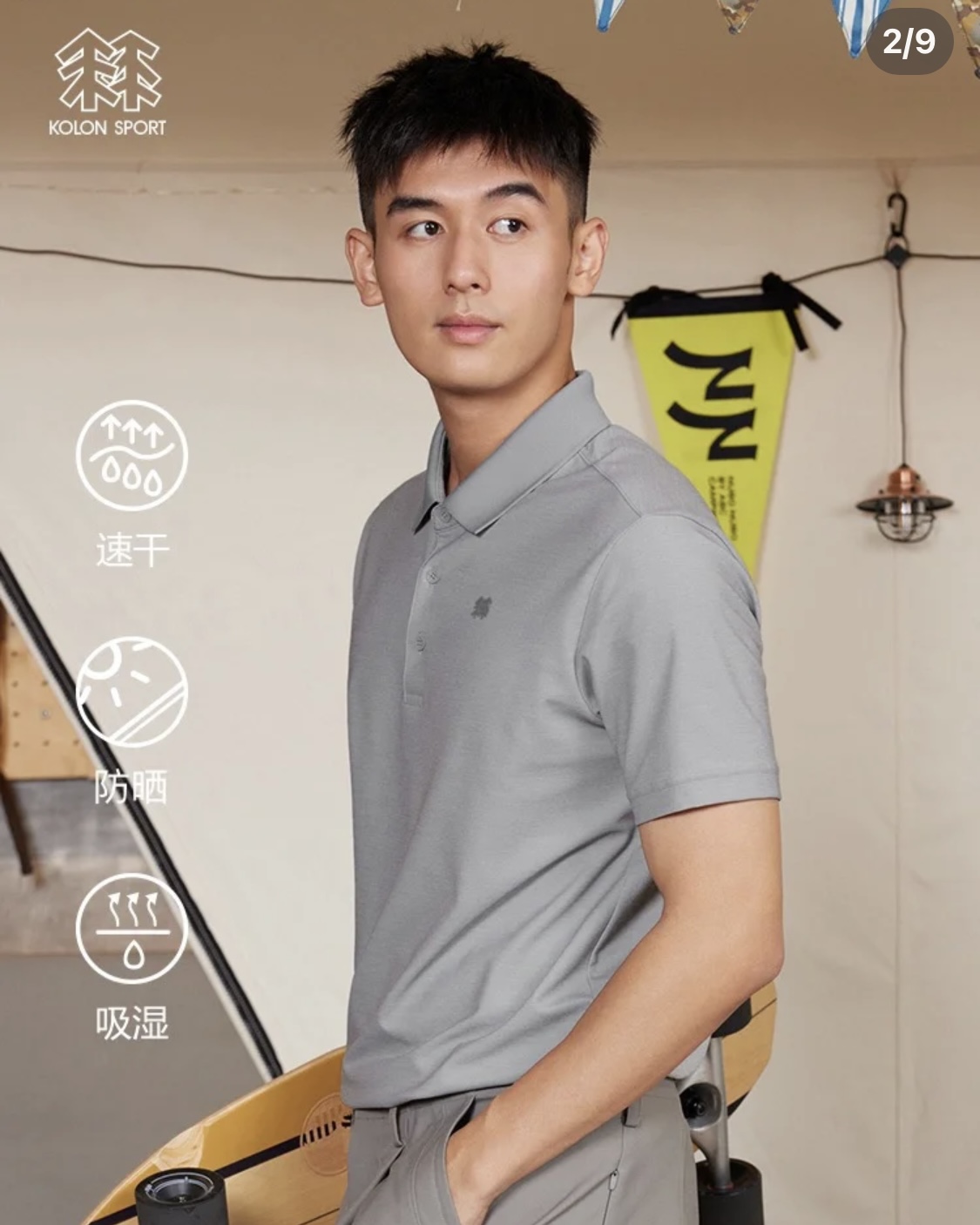 KOLON SPORT可隆短袖T恤X-COT防晒接触凉感商务吸湿速干抗菌凉感polo衫!���