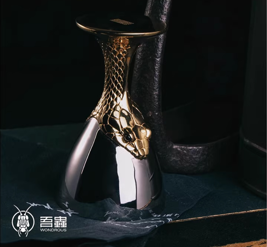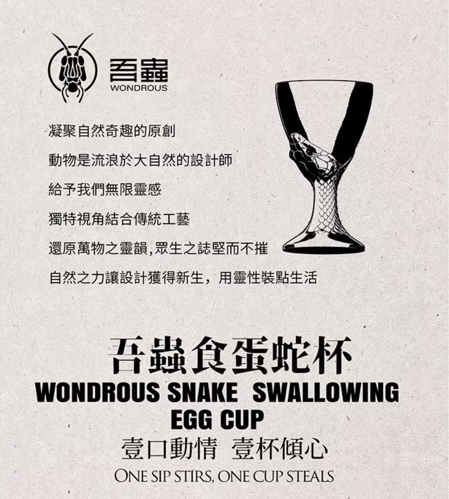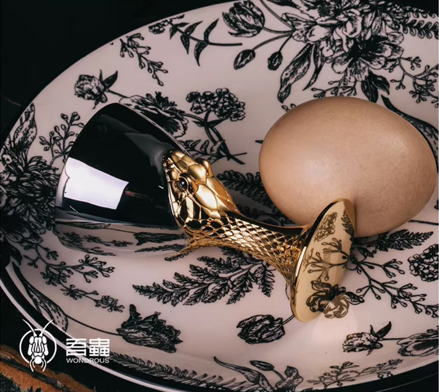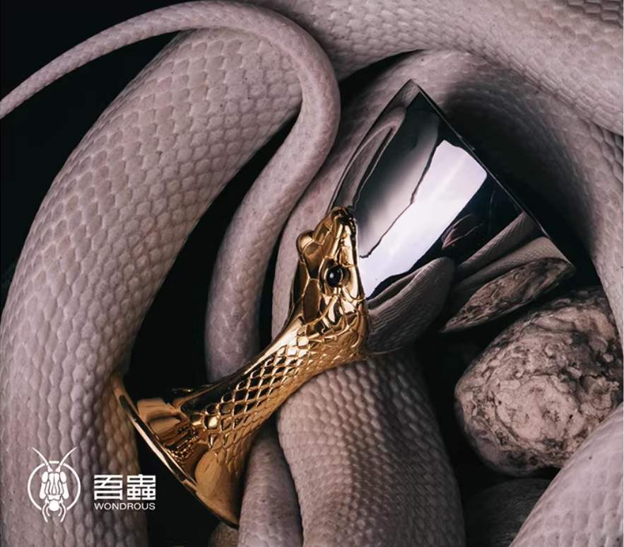 吾蟲-酒杯 蛋托花器 食蛋蛇吞蛋蛇 不锈钢镀18k金个性创意酒具【官方授权】【48小时发货】