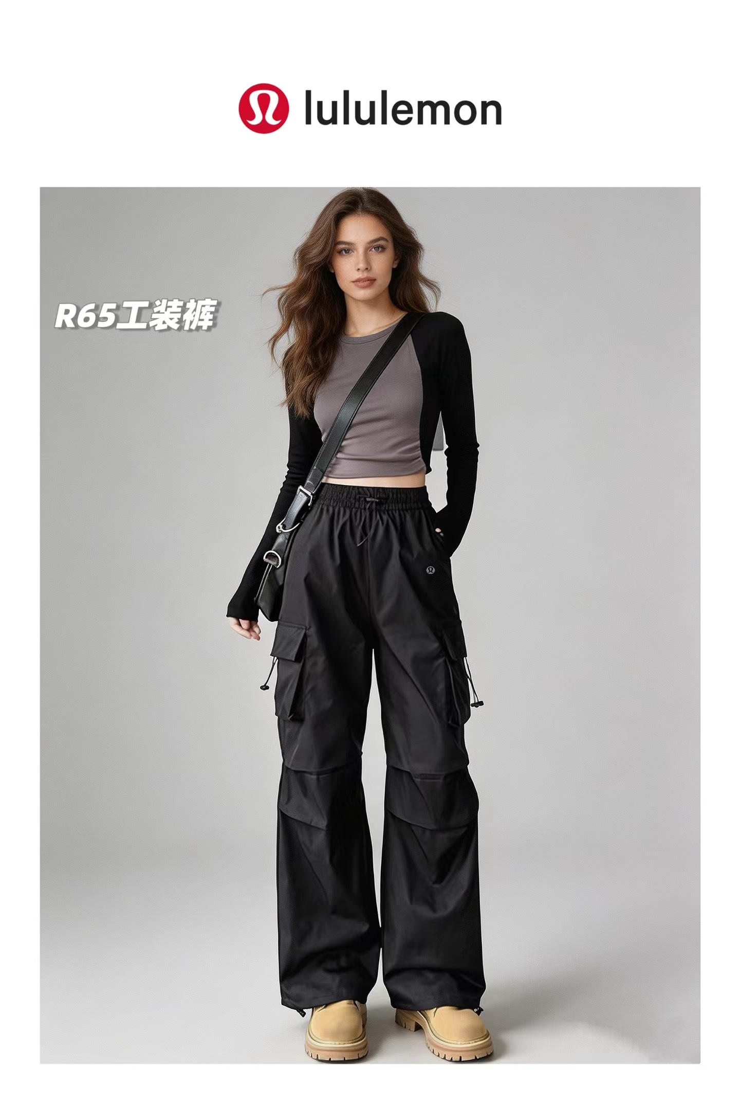 F031204春夏新款2026降落伞高腰微阔腿时尚流行遮肉显瘦工装速干伞兵裤