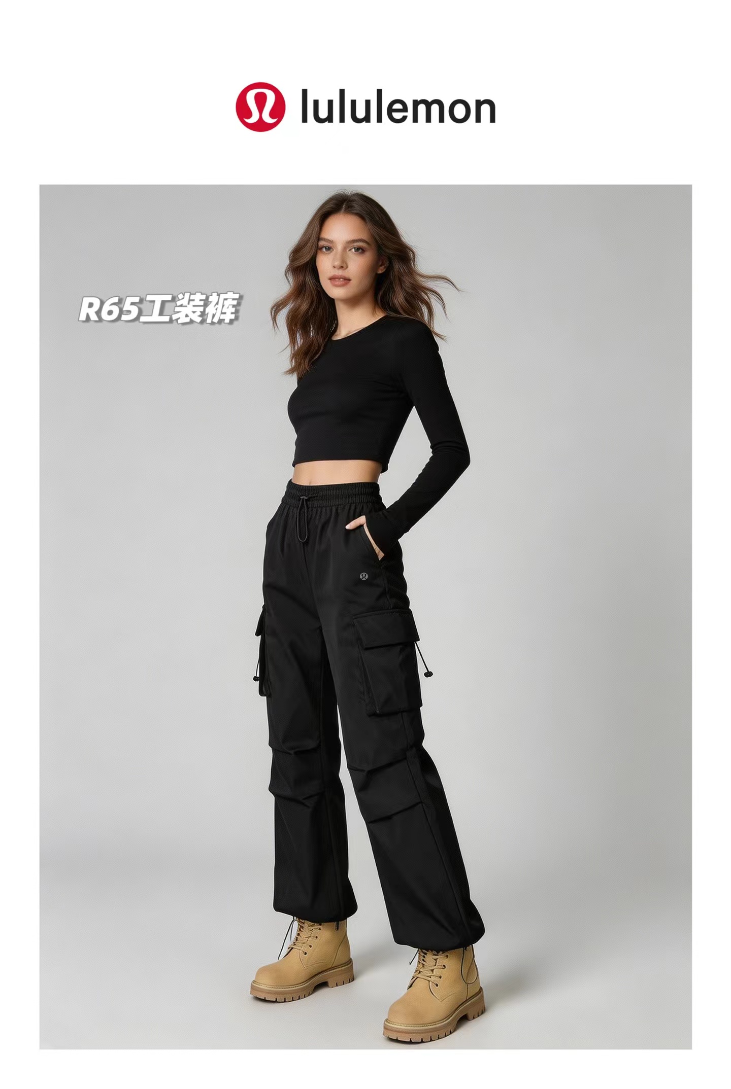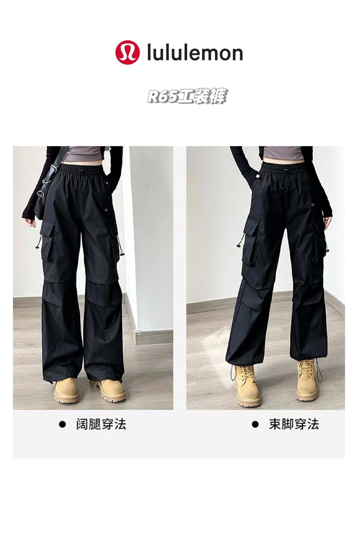 裤长100(可抽绳调节)、松紧腰围70、臀围108