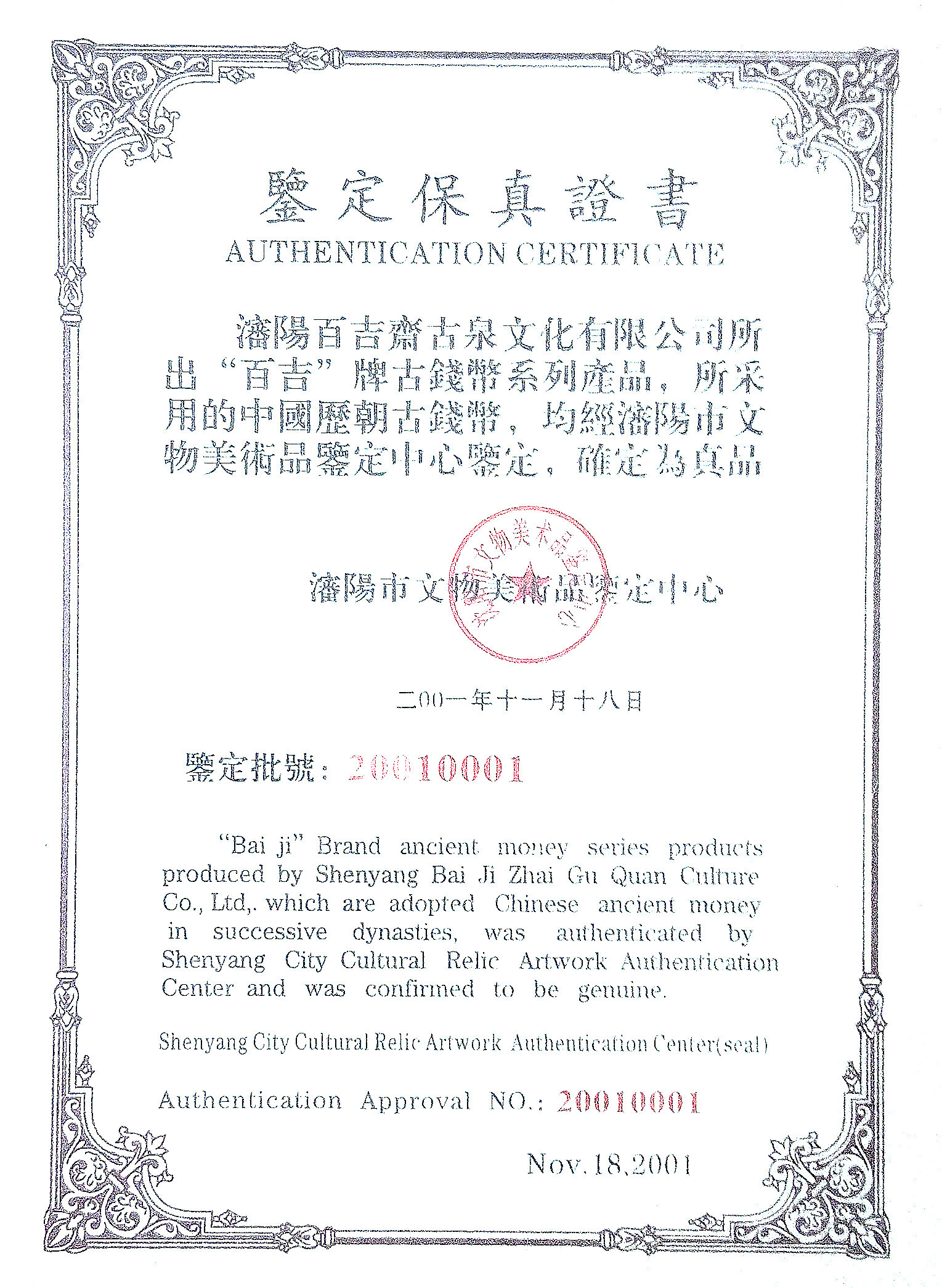 鉴定机构:沈阳市文物美术鉴定中心