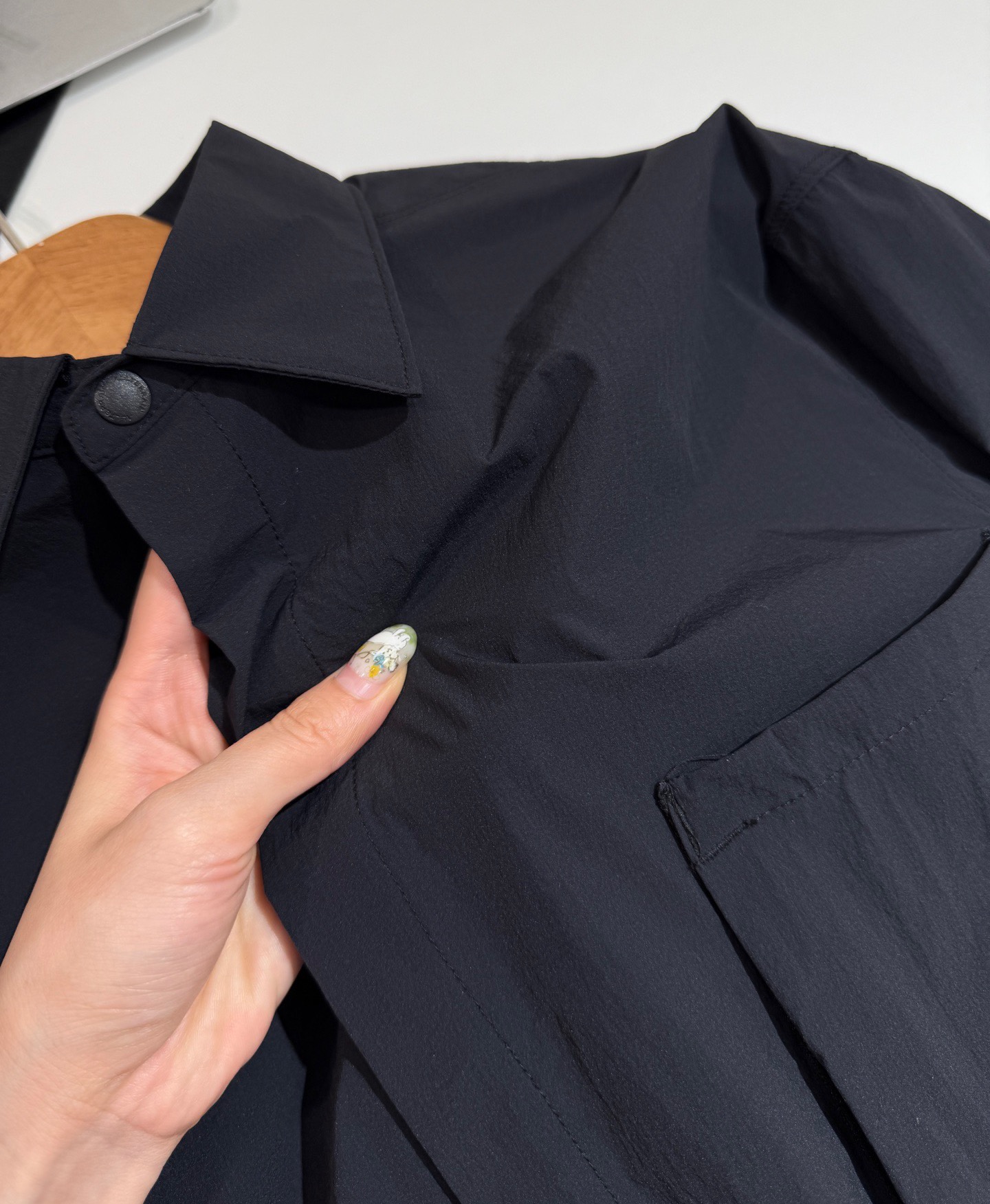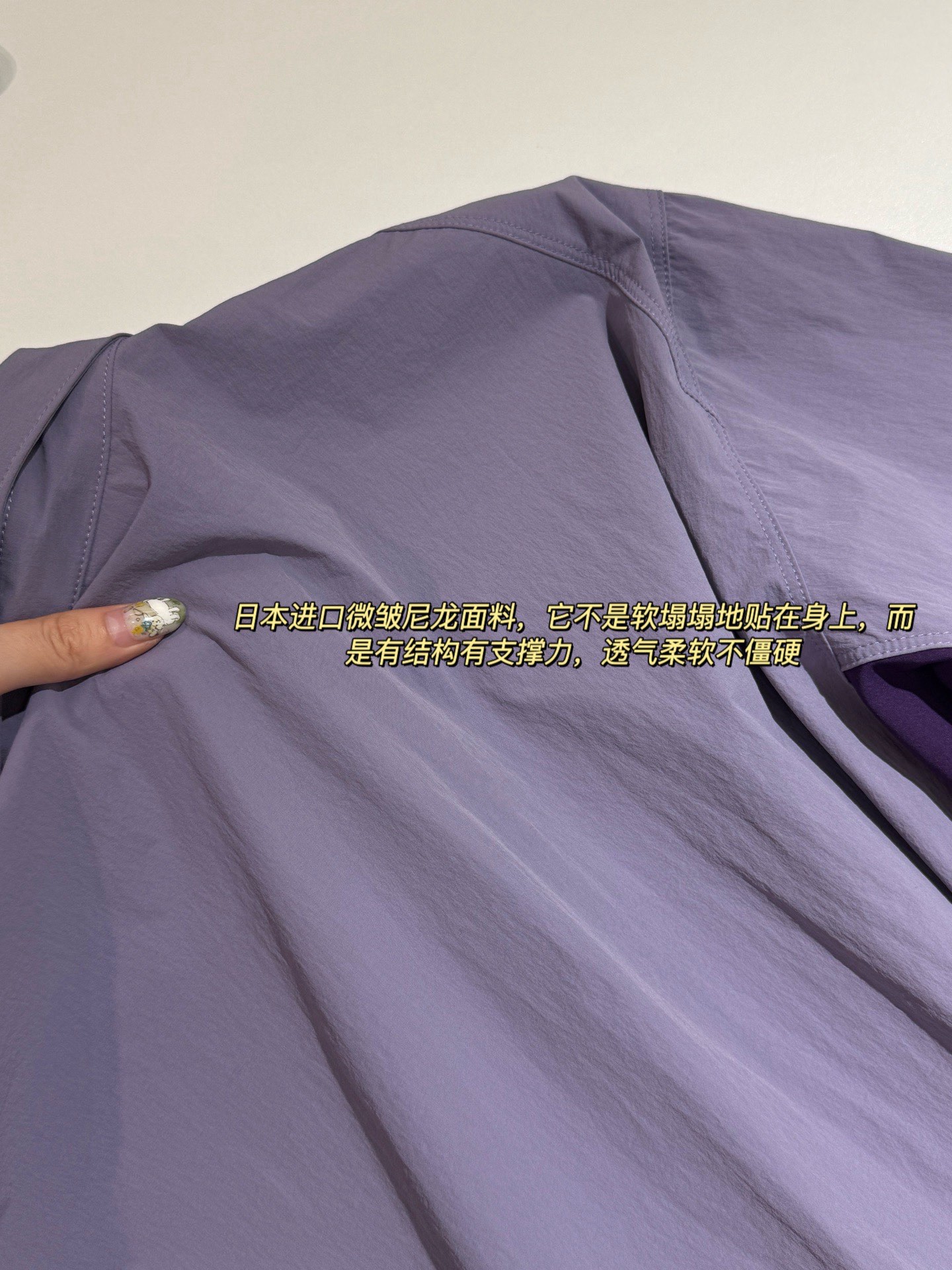 领口设计完全按照衬衣工艺来做的,里面加了小薄衬!这种进口衬非常有型,哪怕水洗后也不易变形