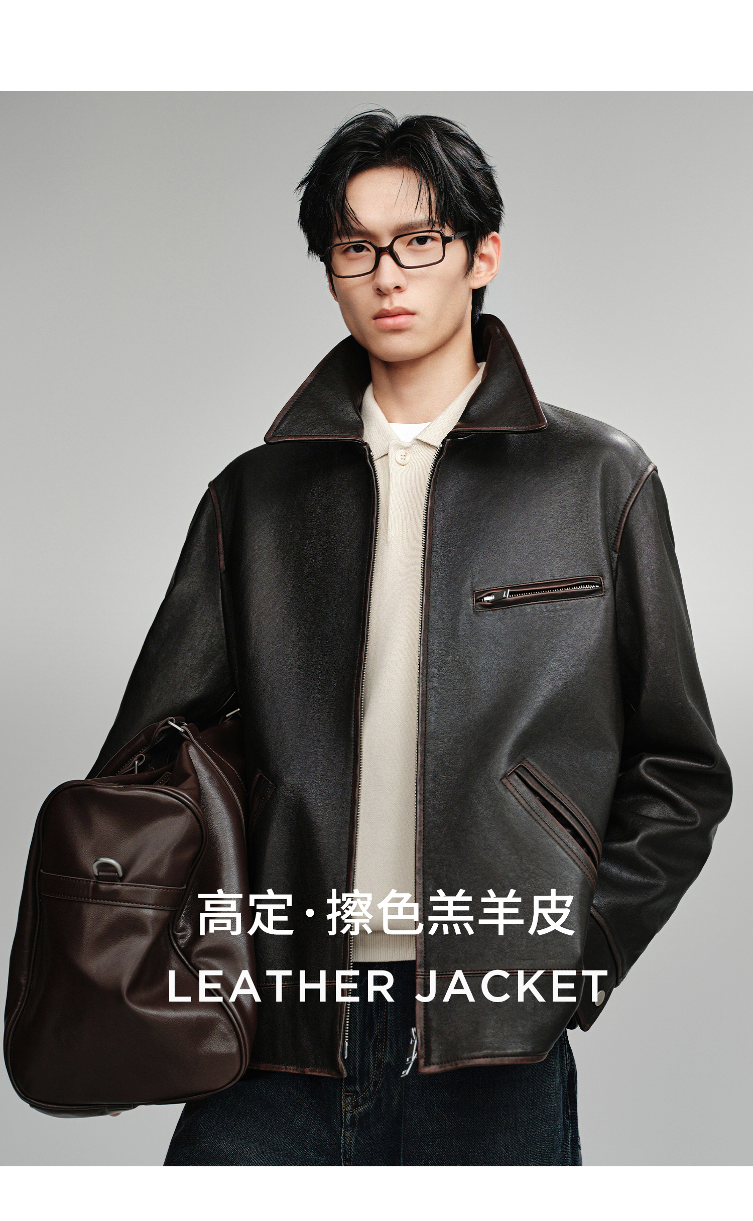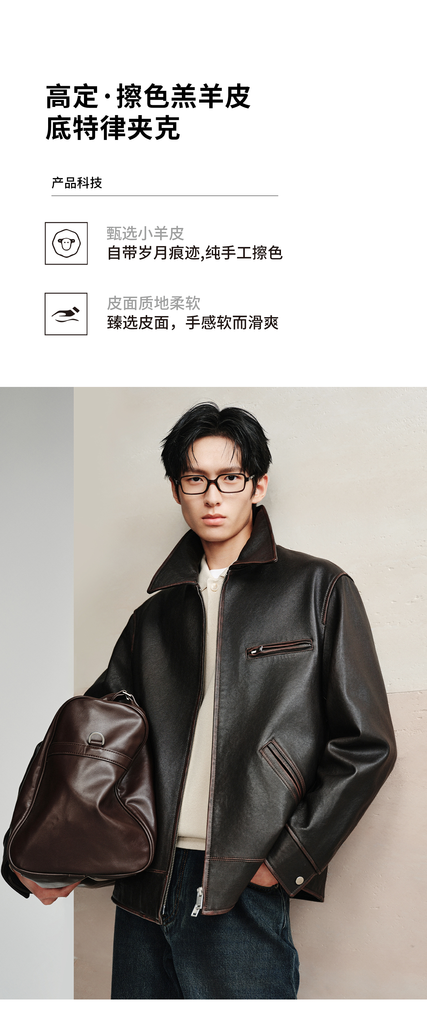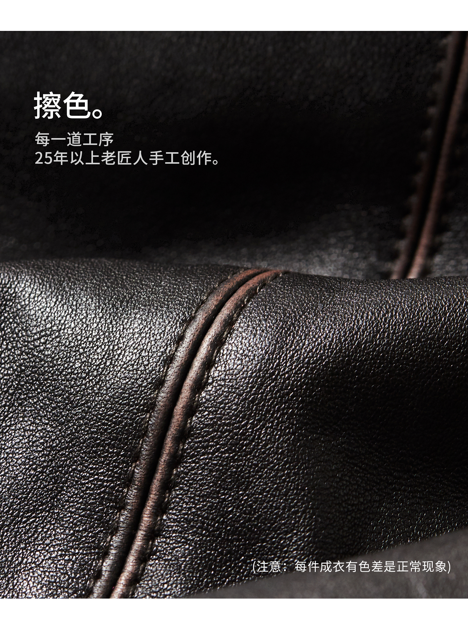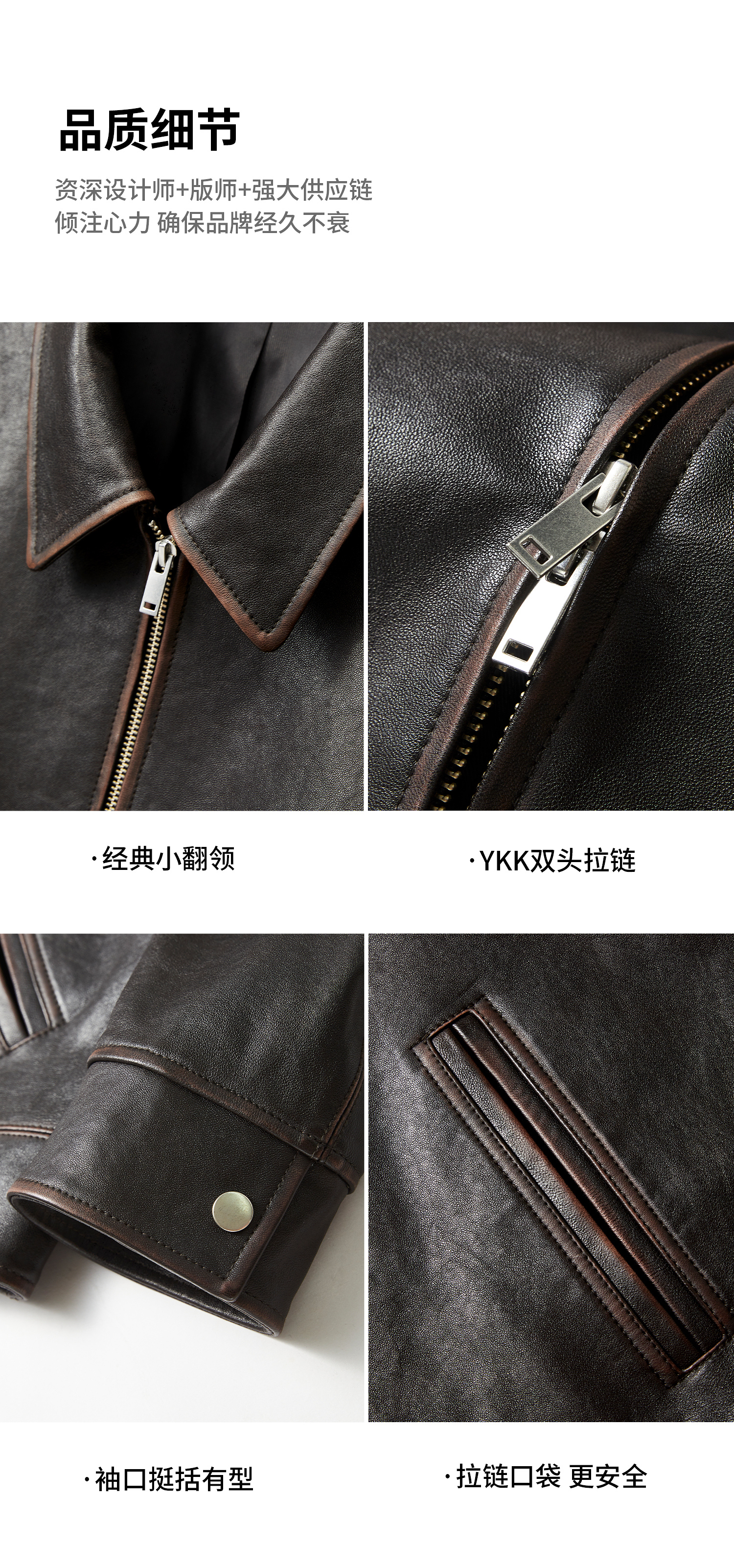 棉仓366827003-7系复古擦色绵羊皮皮衣男 秋冬老钱风底特律真皮夹克外套