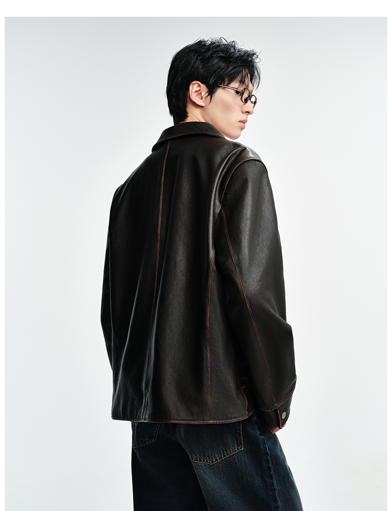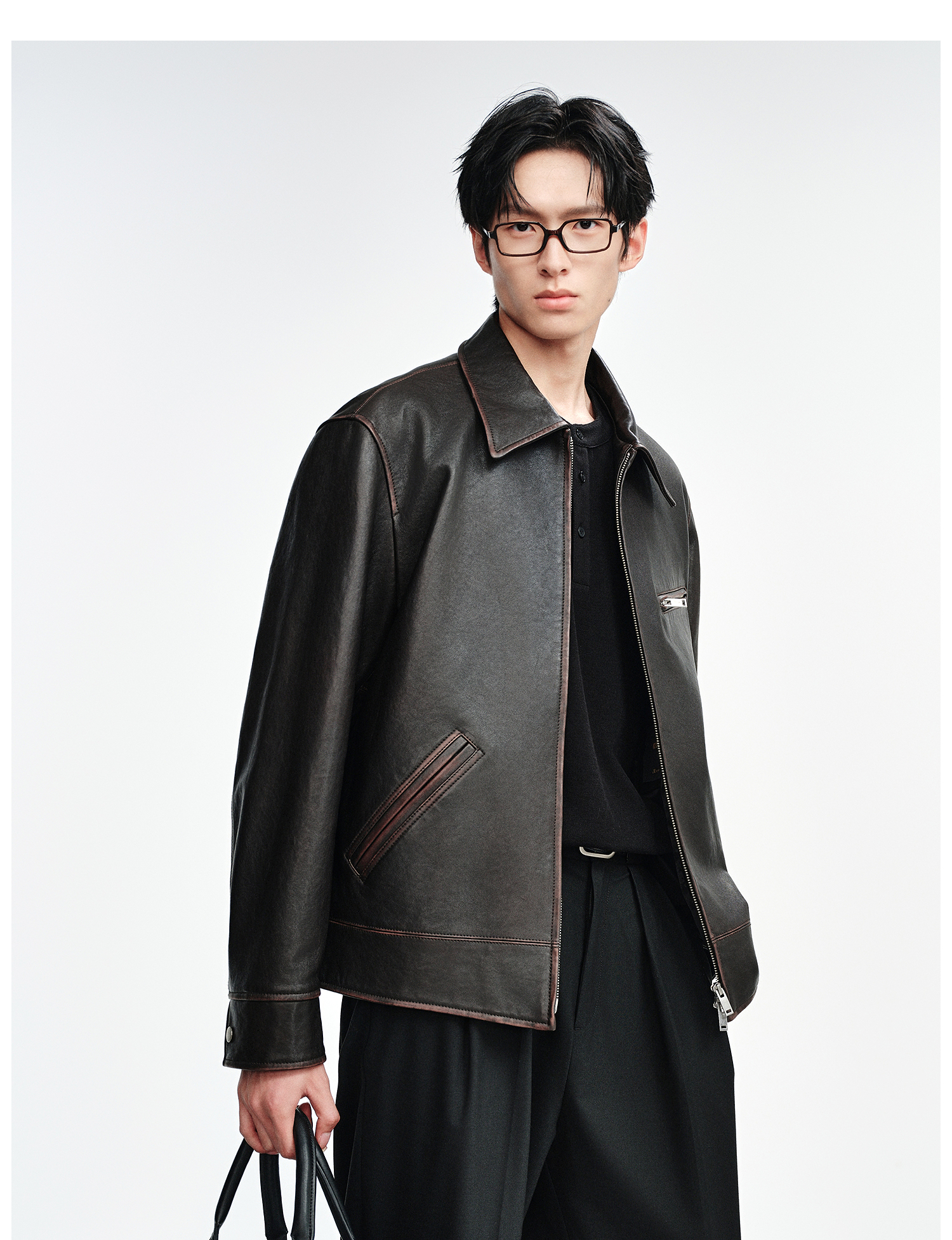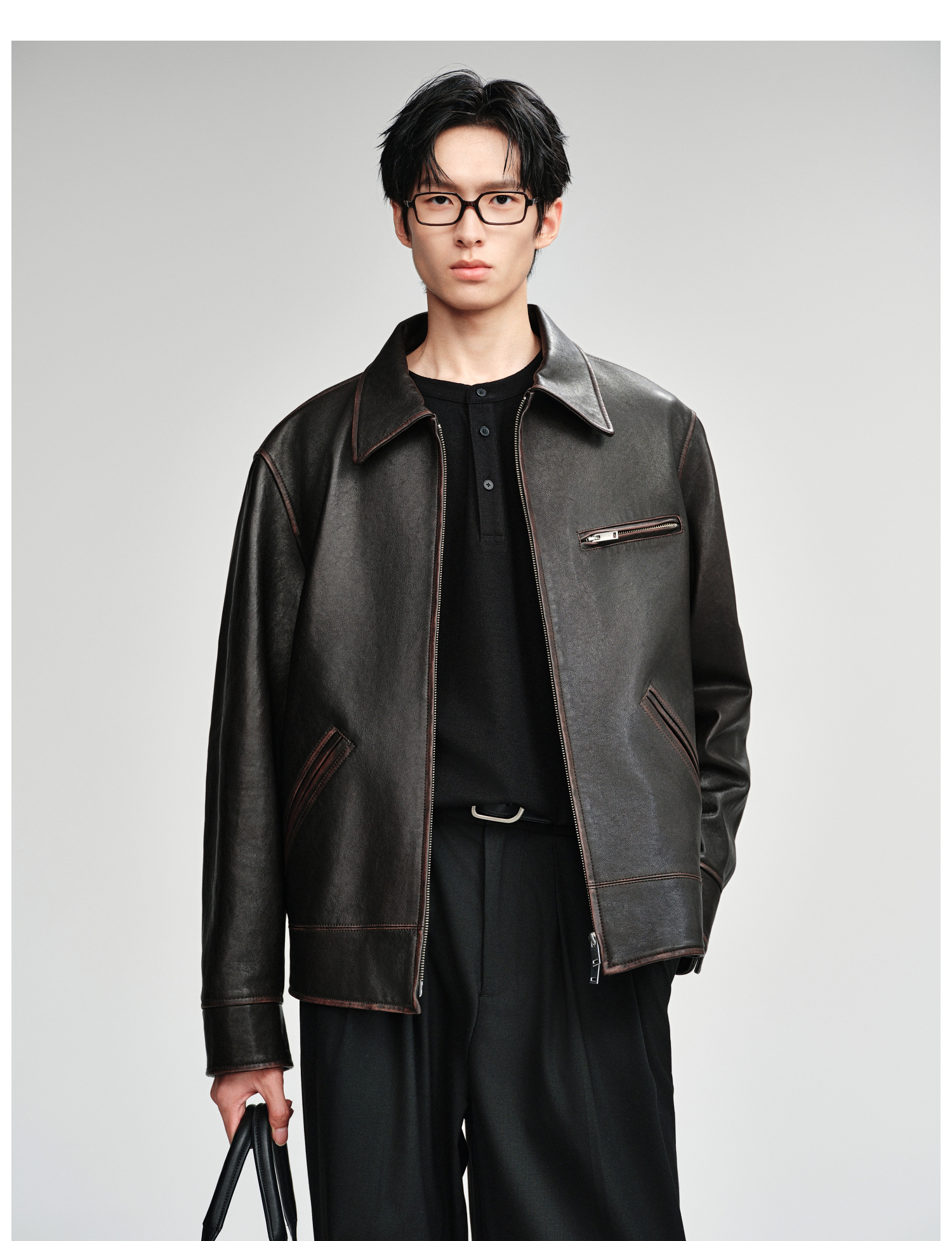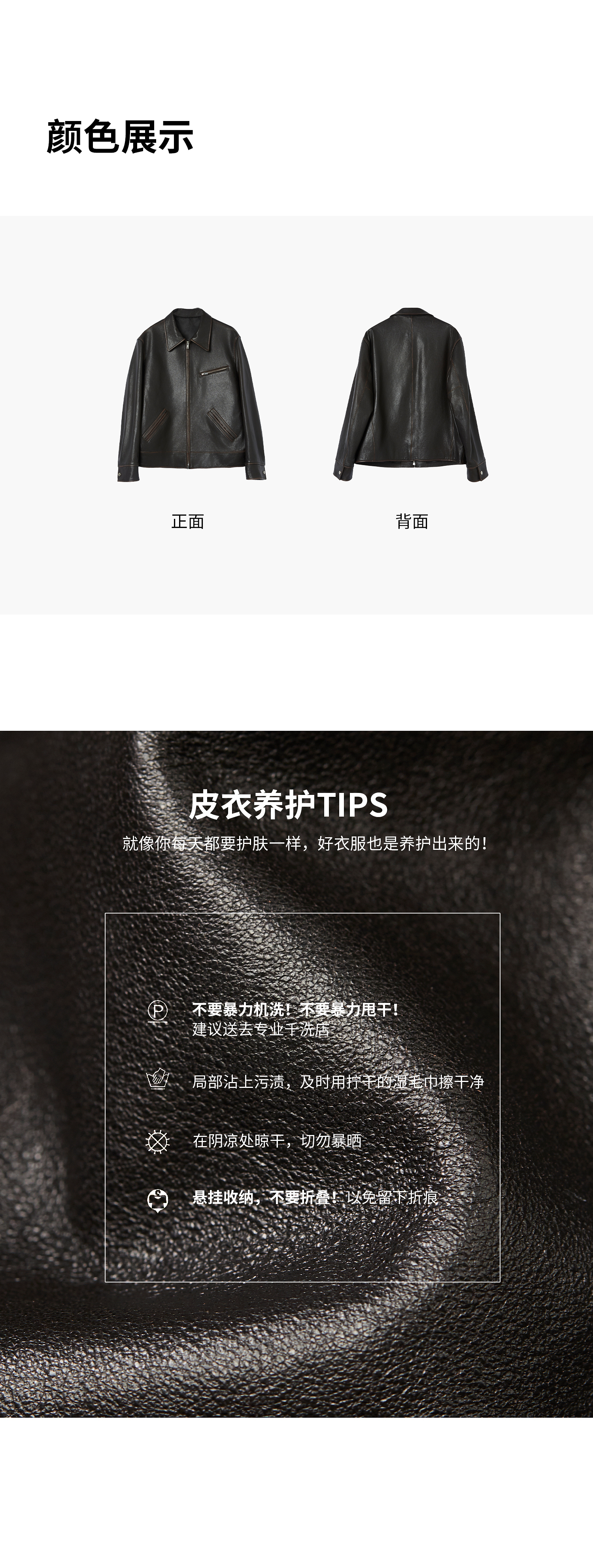 棉仓366827003-7系复古擦色绵羊皮皮衣男 秋冬老钱风底特律真皮夹克外套
