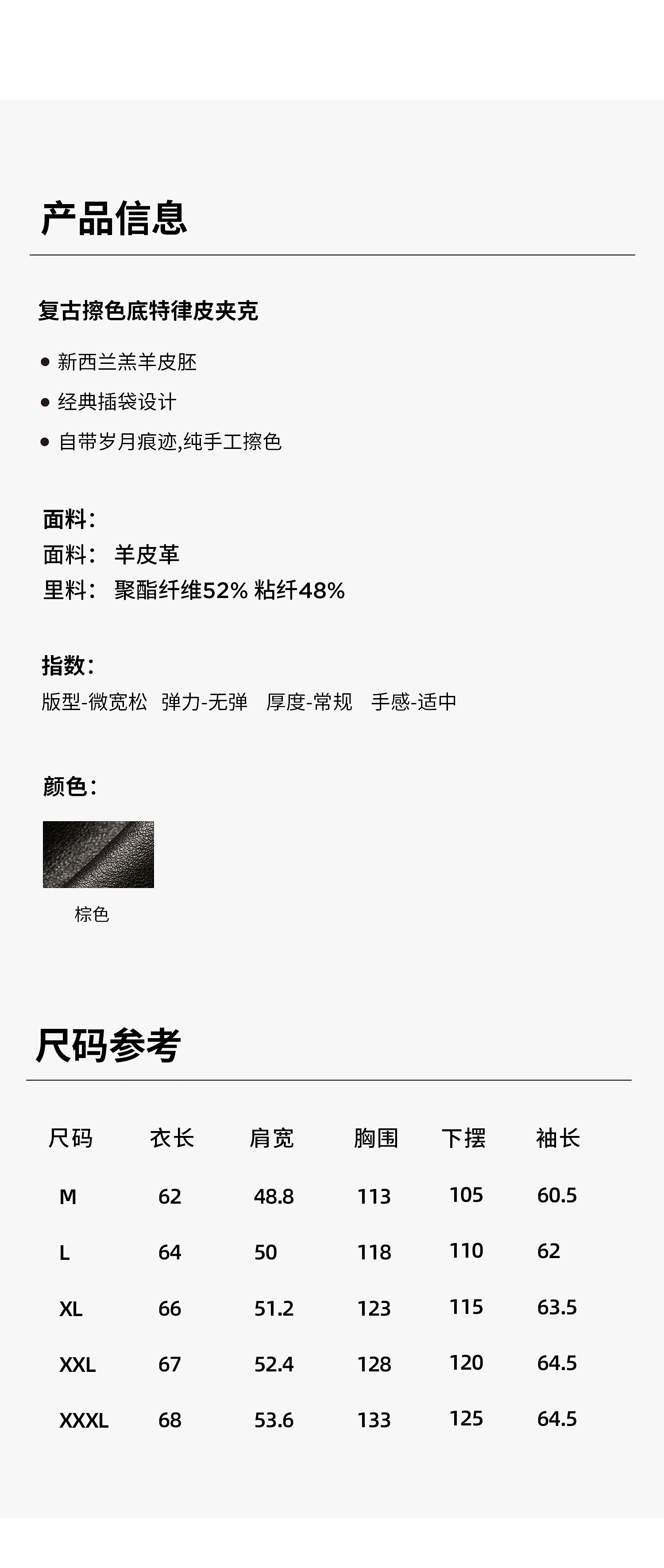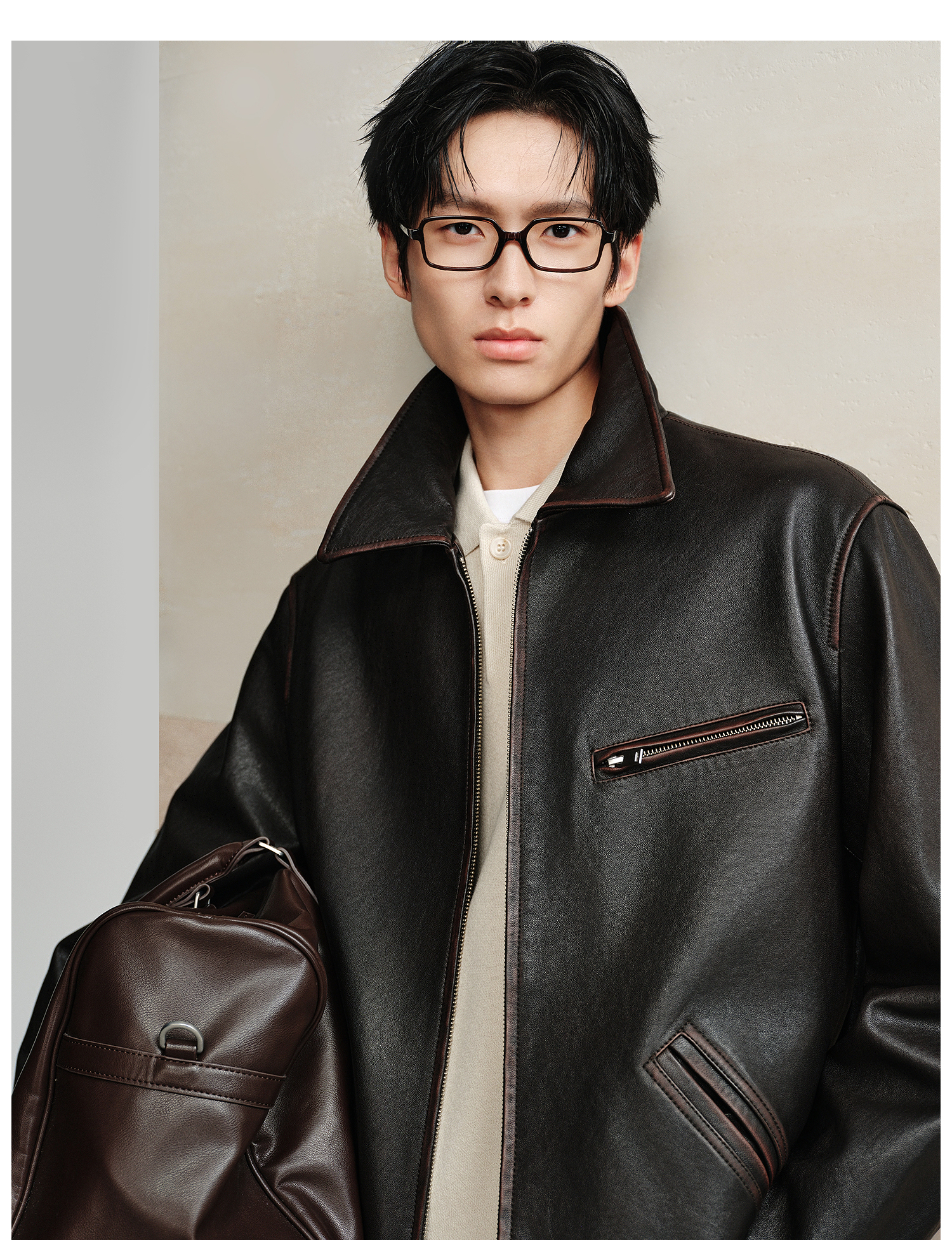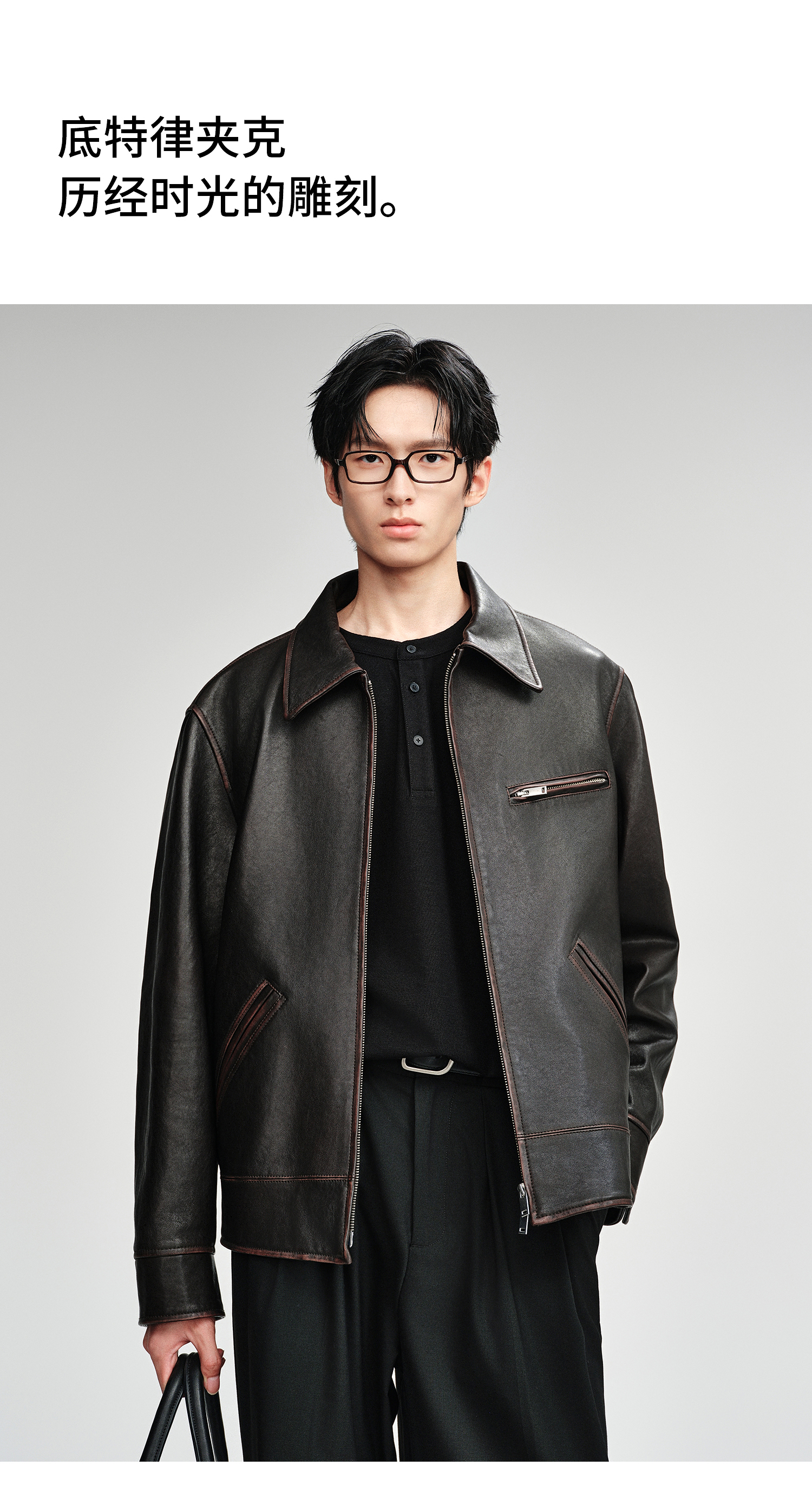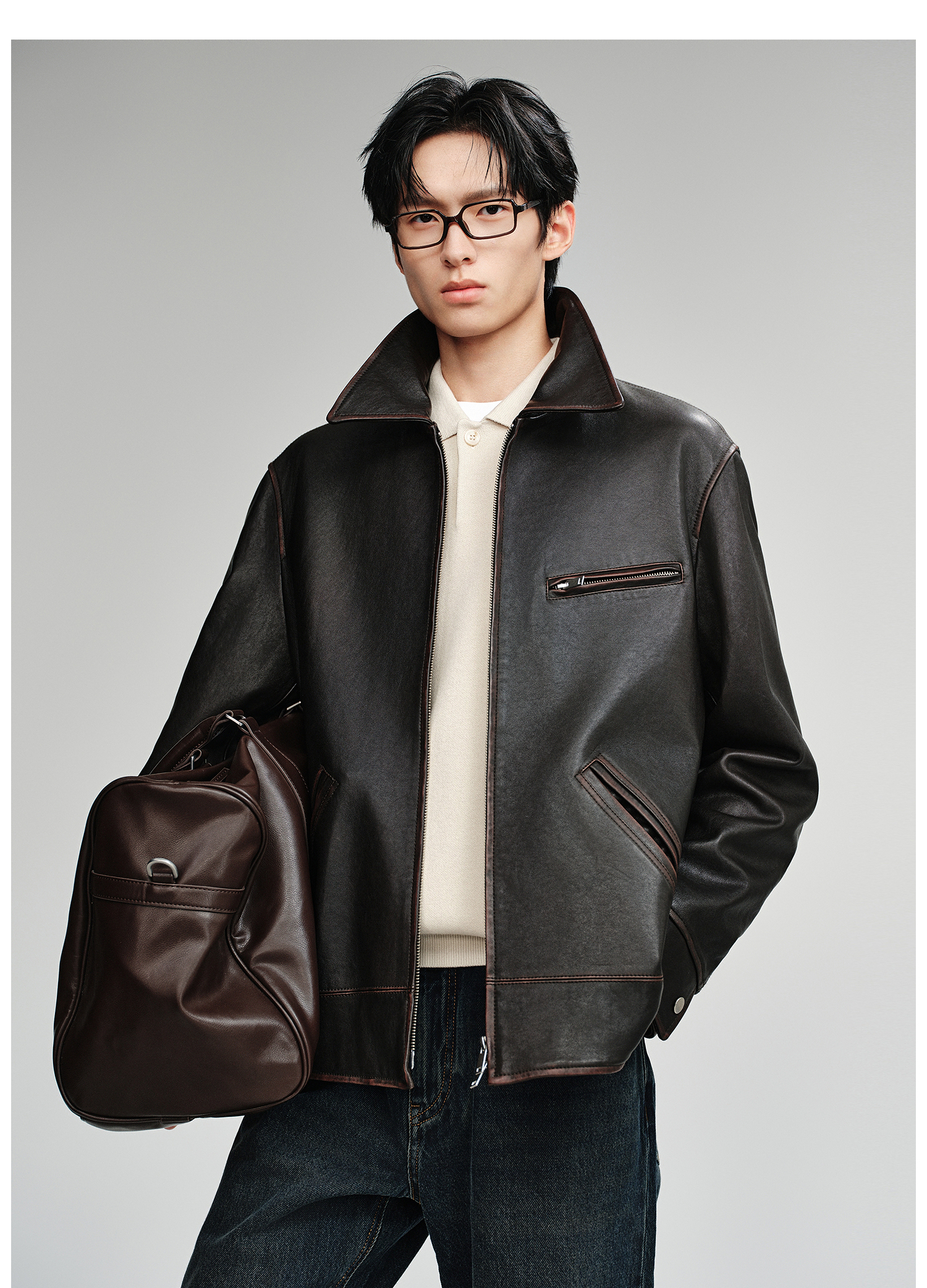 棉仓366827003-7系复古擦色绵羊皮皮衣男 秋冬老钱风底特律真皮夹克外套