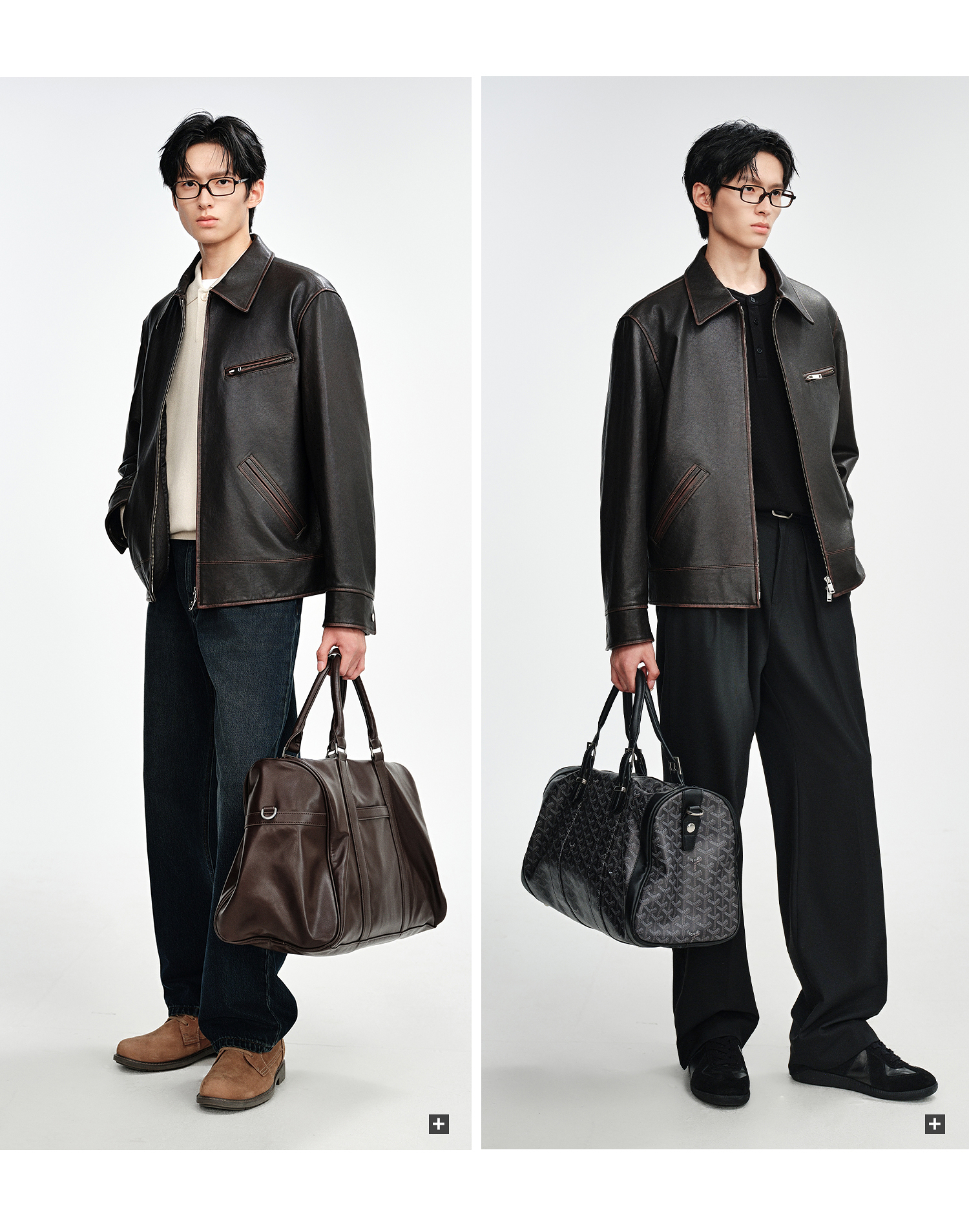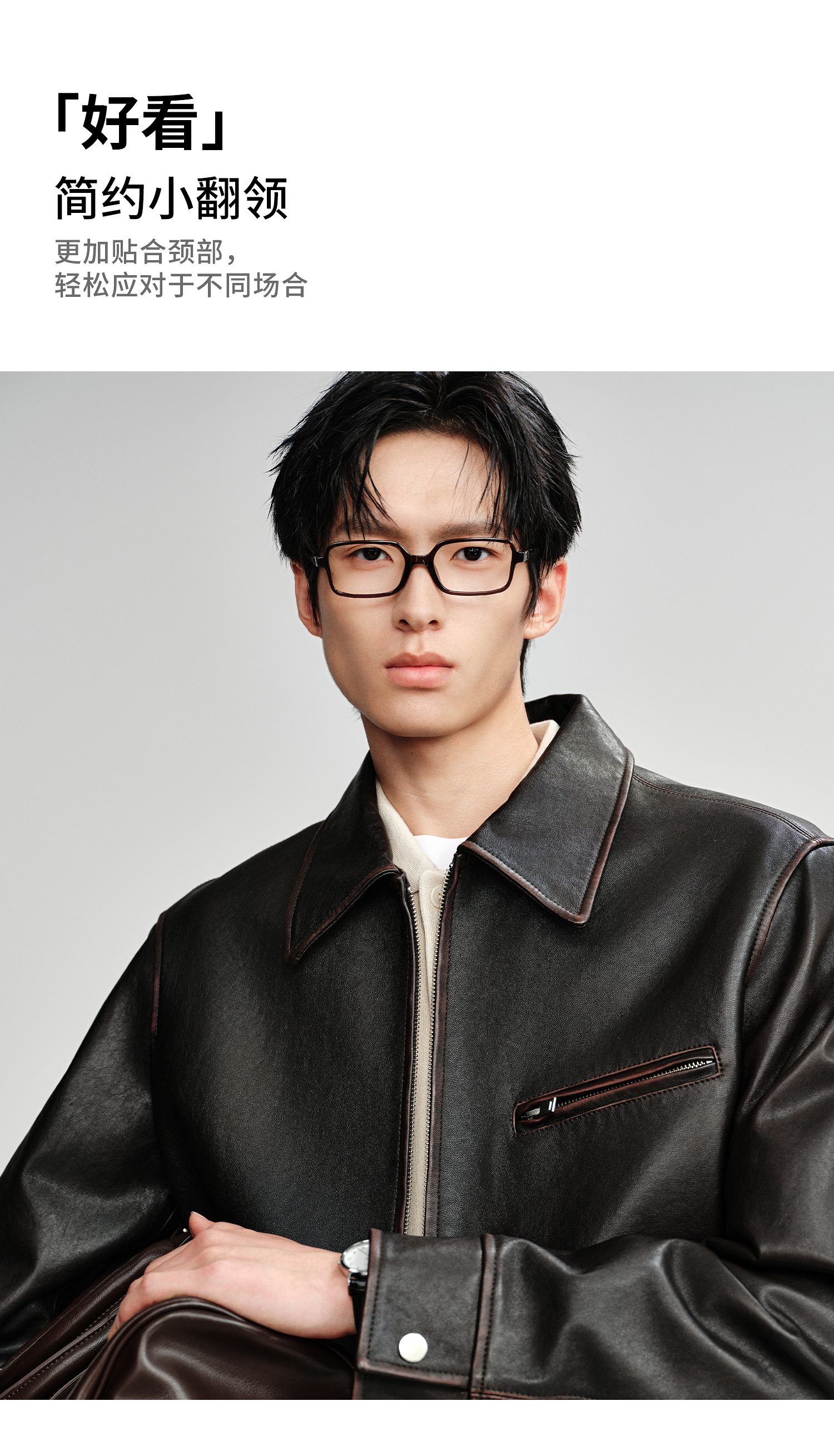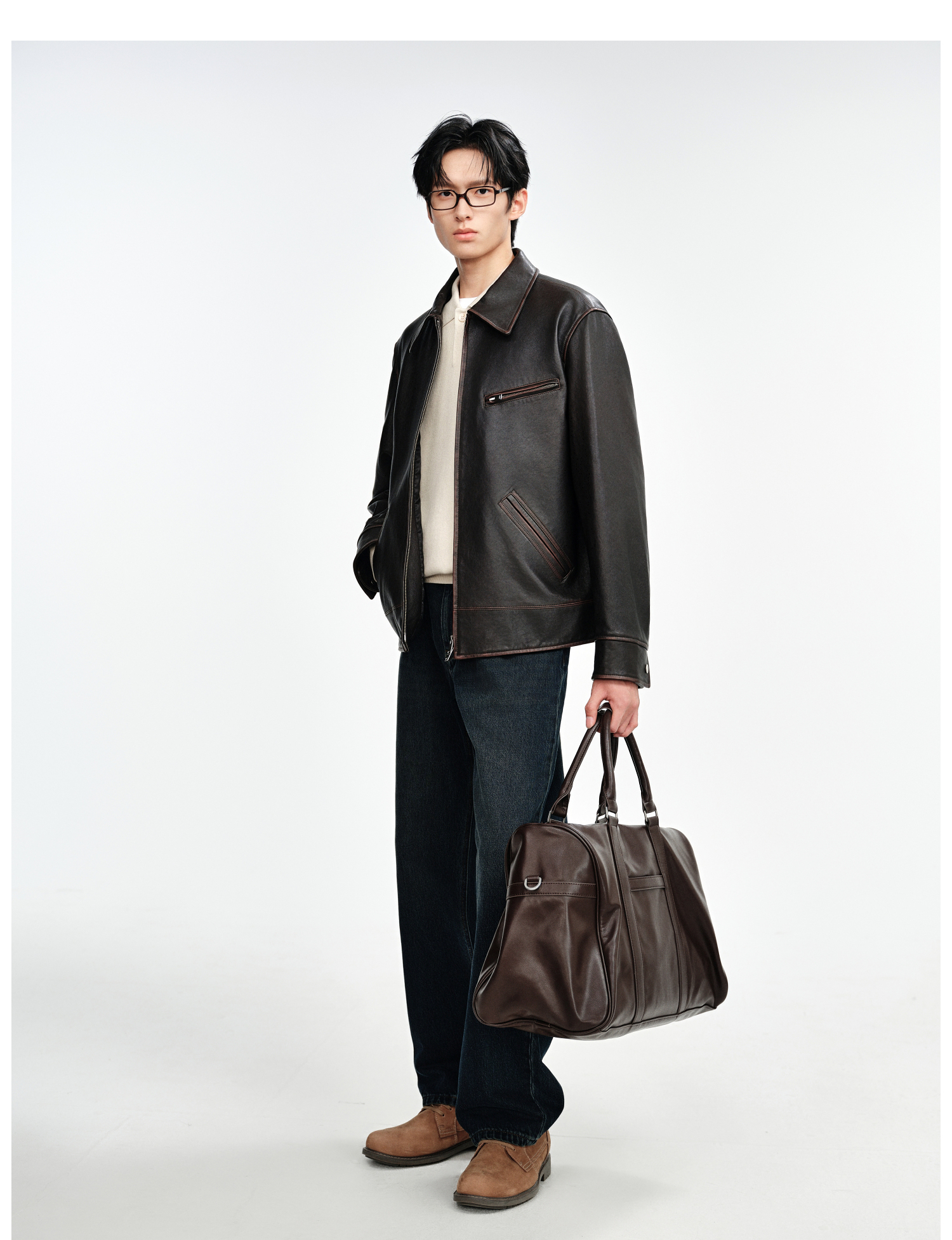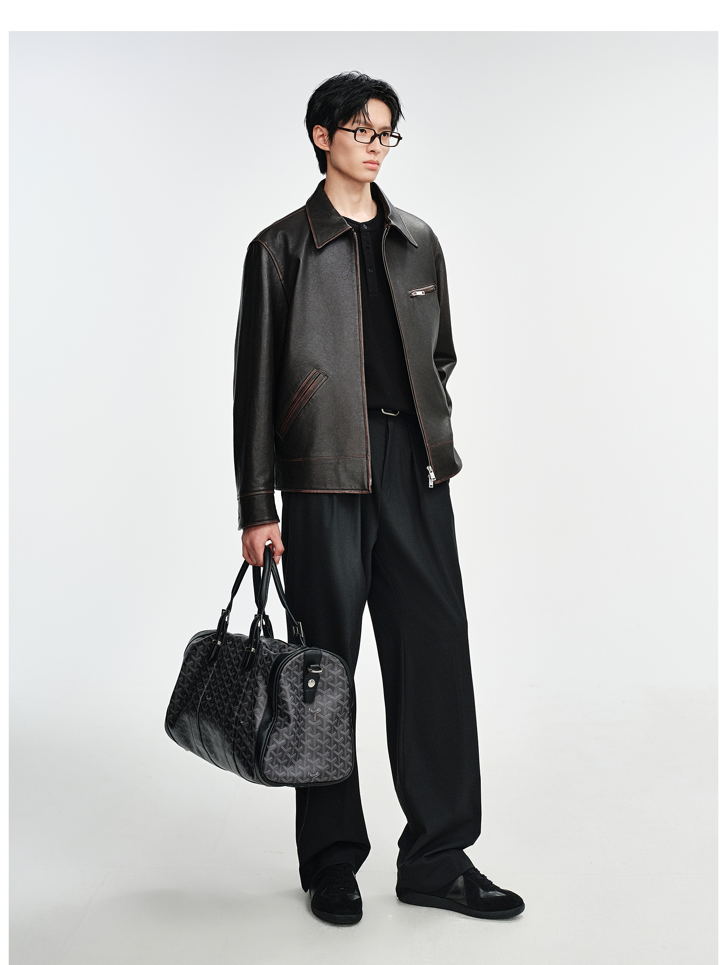 棉仓366827003-7系复古擦色绵羊皮皮衣男 秋冬老钱风底特律真皮夹克外套