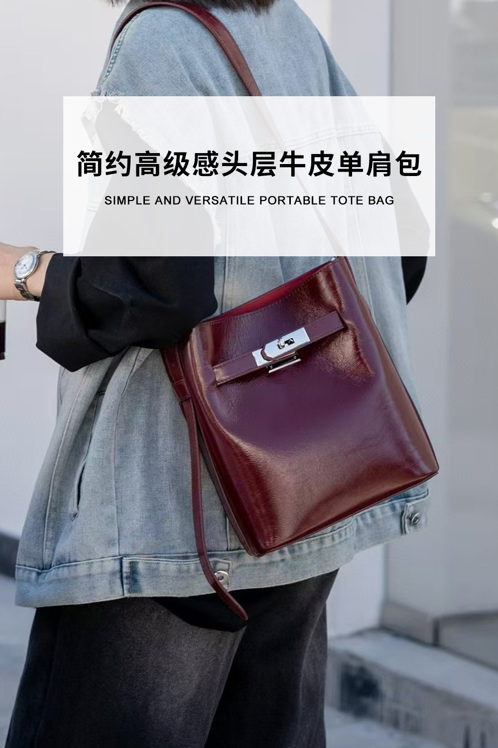 【预售3天】2025新款百搭女士油漆亮皮单肩斜挎水桶包S-7178Y