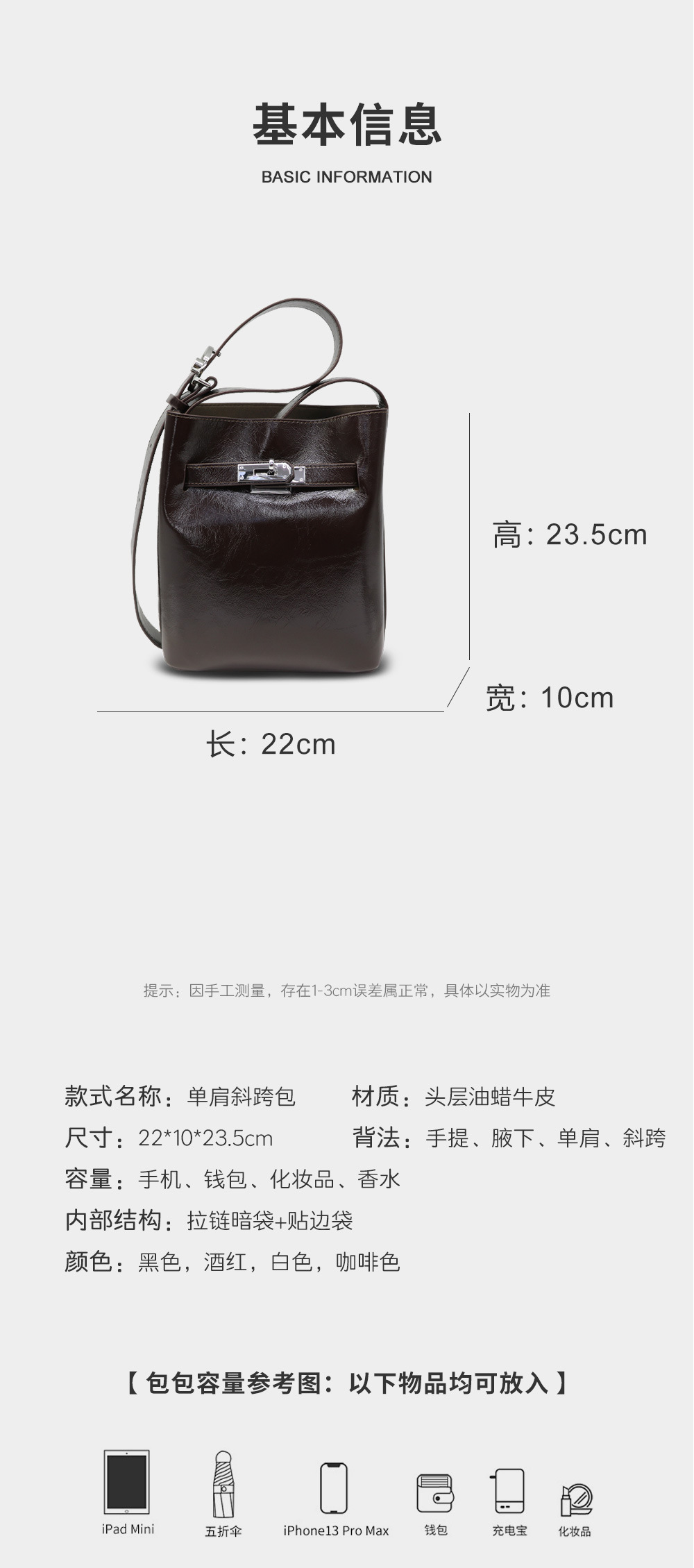 【预售3天】时尚经典纯色女式新款水桶包大容量单肩包CO1C2041