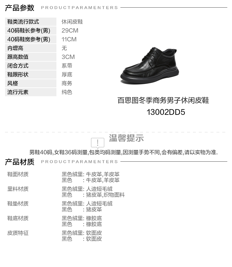 【云粉节】BF楼百思图2025冬季新款休闲皮鞋简约商务通勤男鞋13002DD5 吊牌价959.现价469