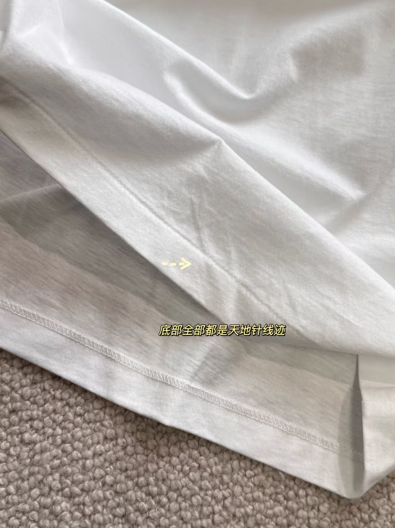 底边袖口全部天地针迹,隐形走线,内里进口机器清边。