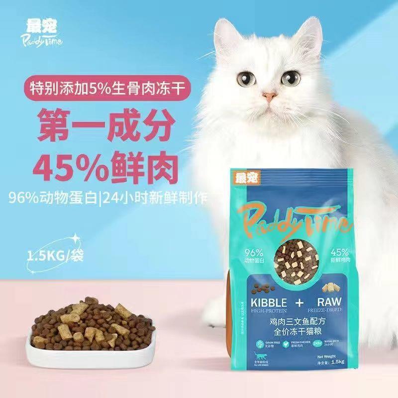 PaddyTime冻干鸡肉二文鱼猫粮高蛋白营养增肥发腮 1.5kg