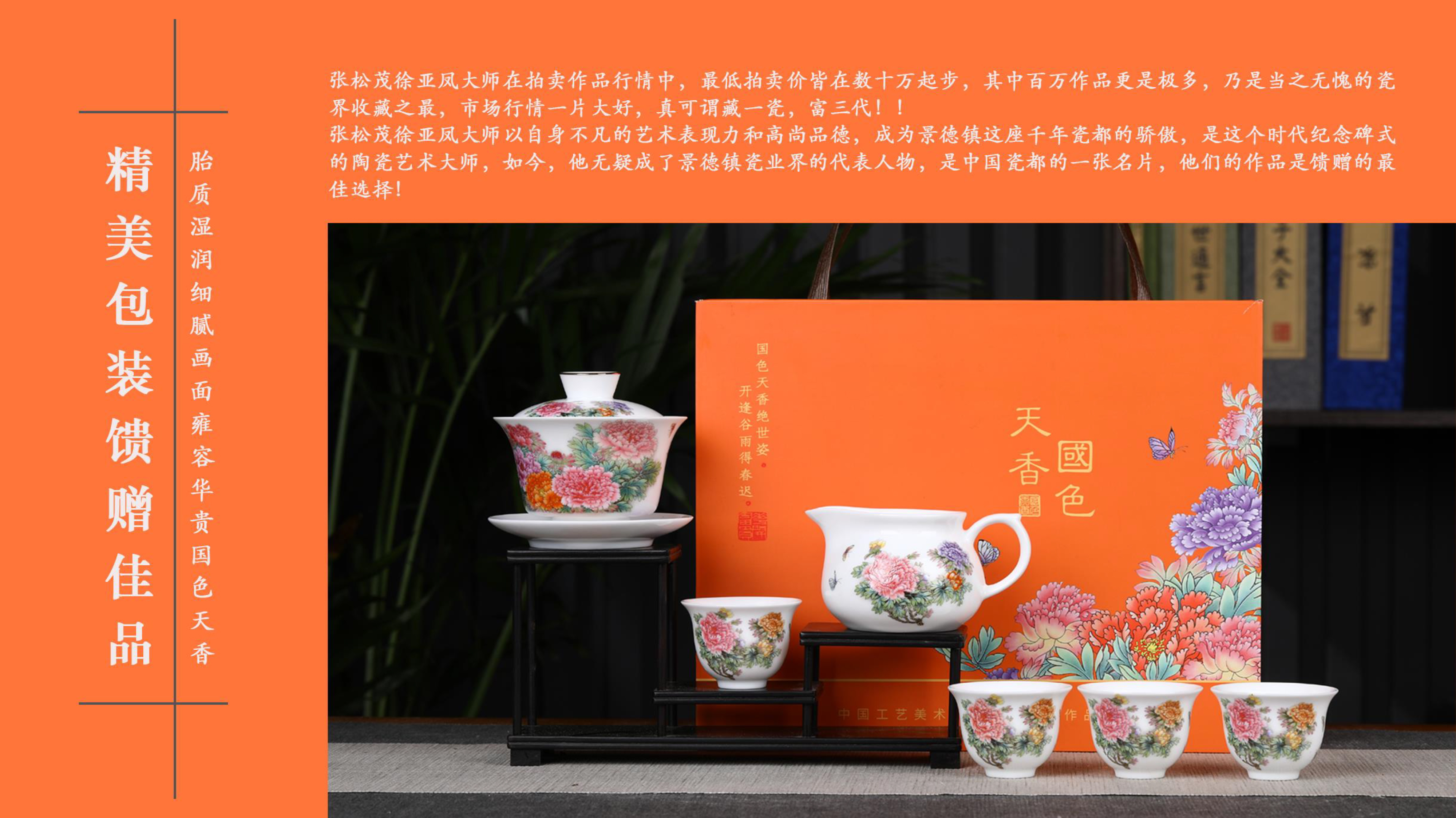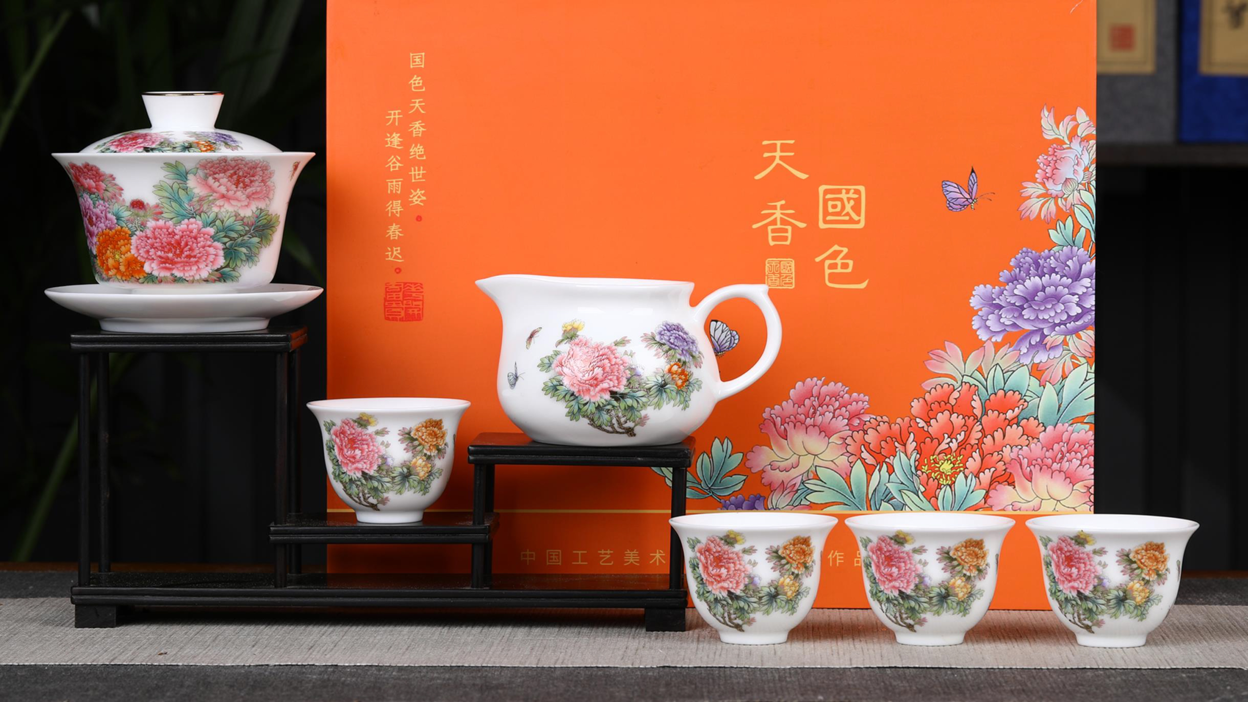 《国色天香》重工粉彩茶具 牡丹大王张松茂、粉彩女王徐亚凤之作
