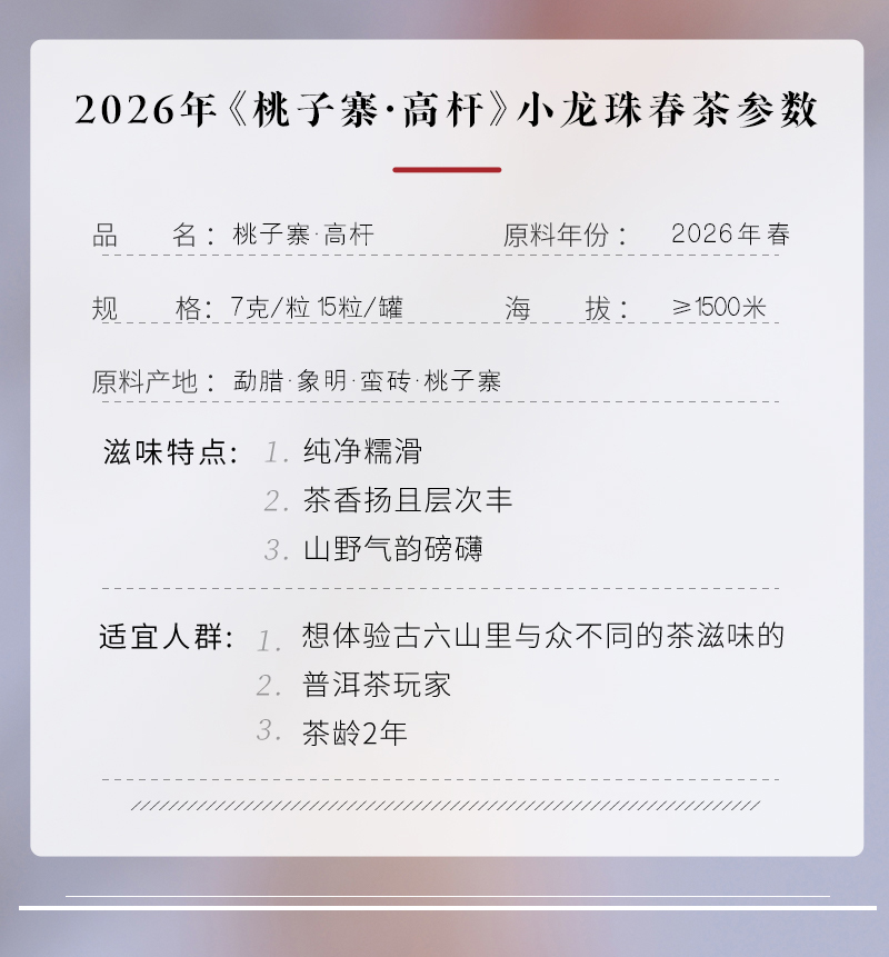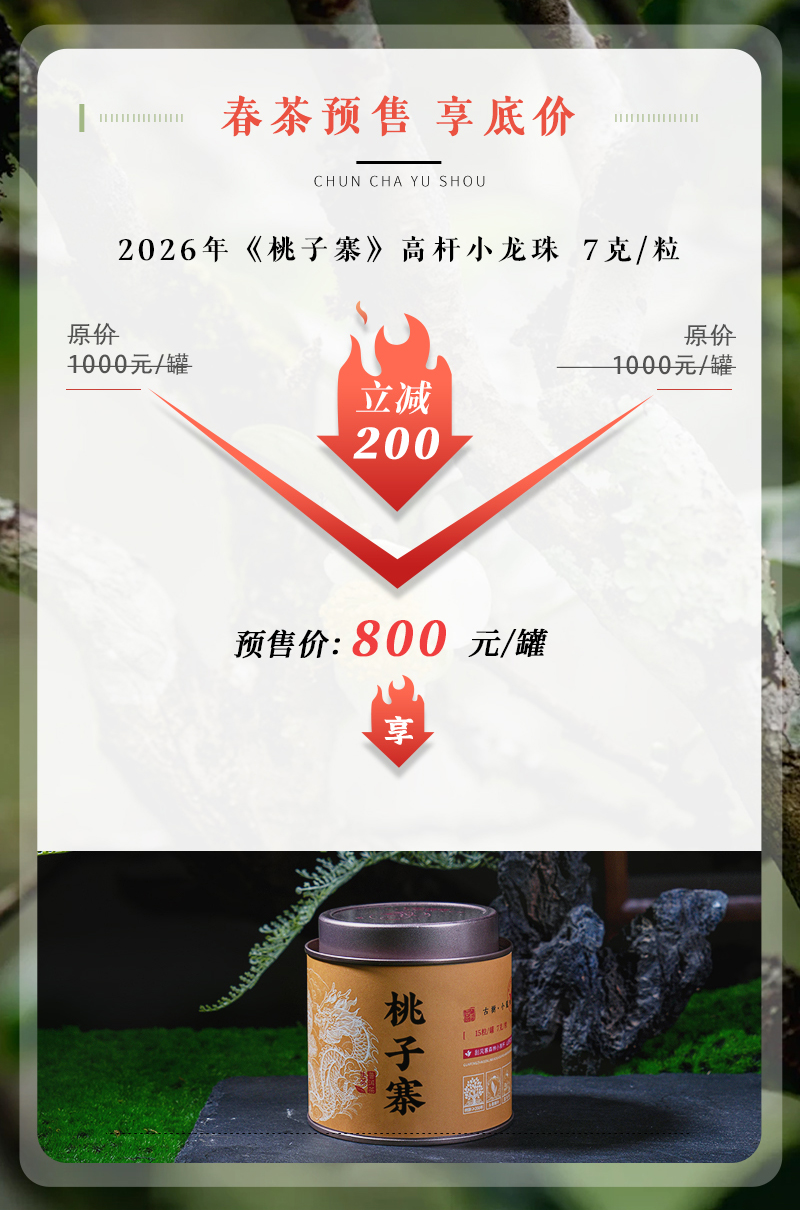 【预售8折】2026《桃子寨》高杆古树春茶小龙珠 7克*15颗 生茶