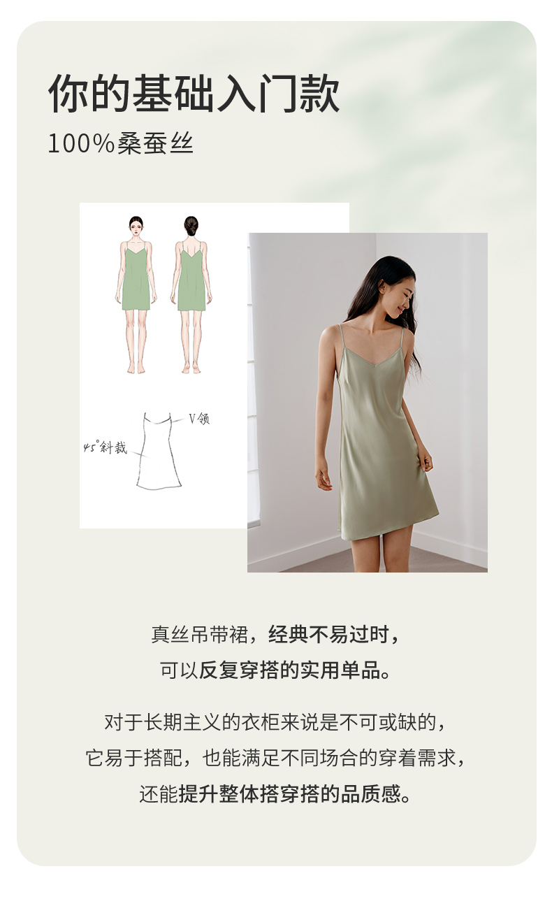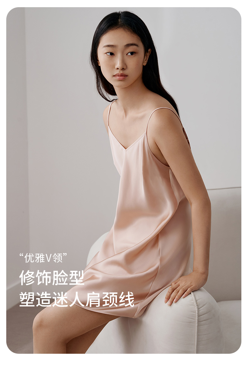 重磅真丝睡裙丝滑舒适100%桑蚕丝吊带睡衣女宽松纯色家居服金三塔 (限价款) YSFFA314/YSFAA317
