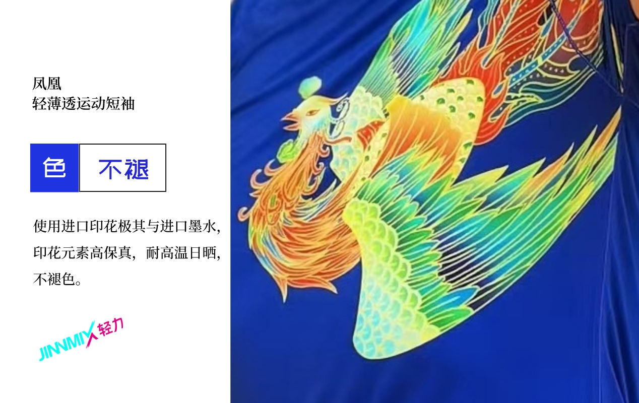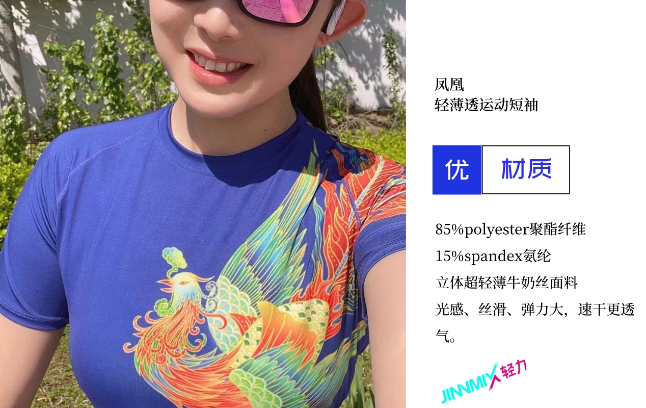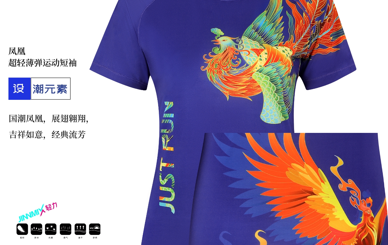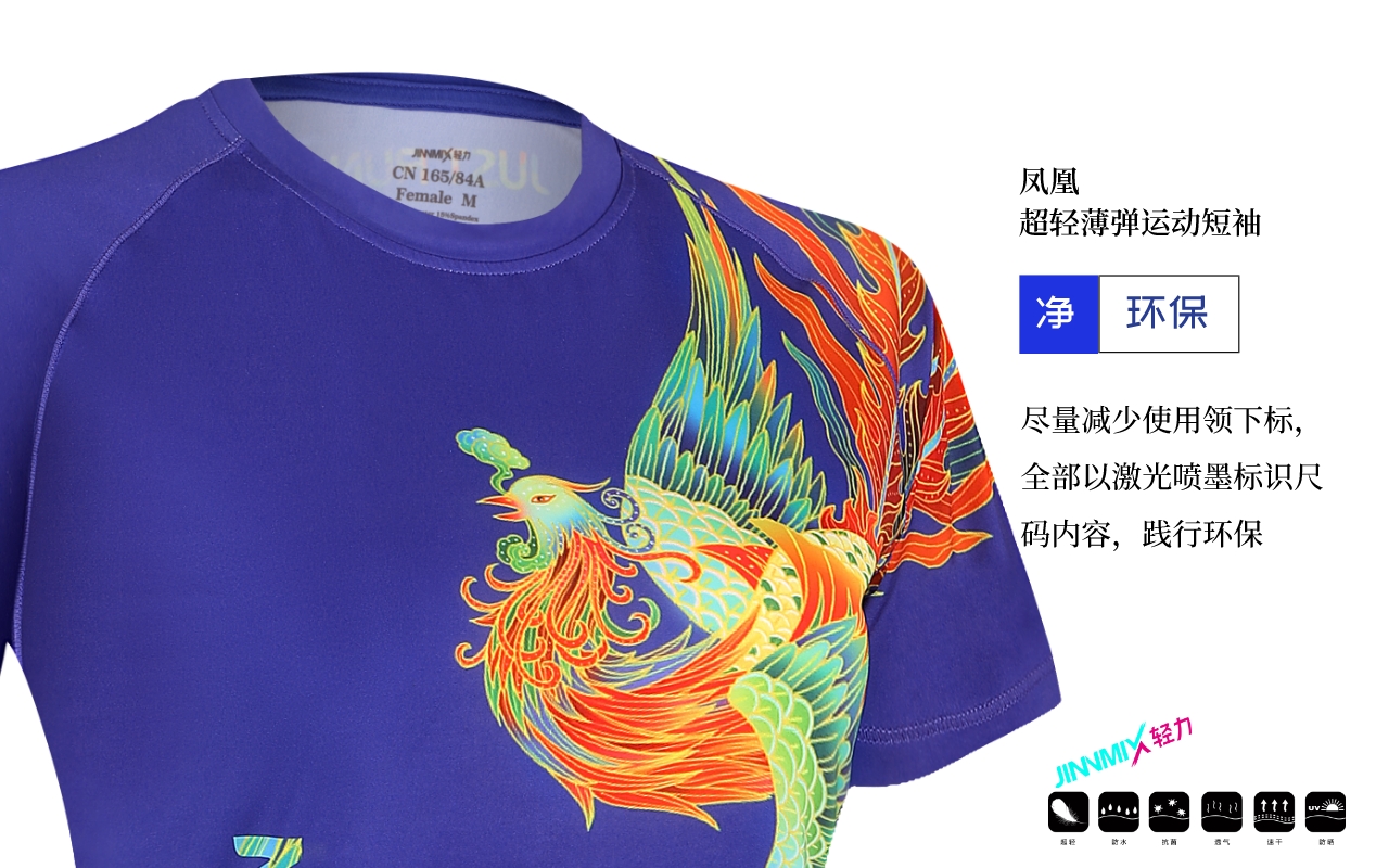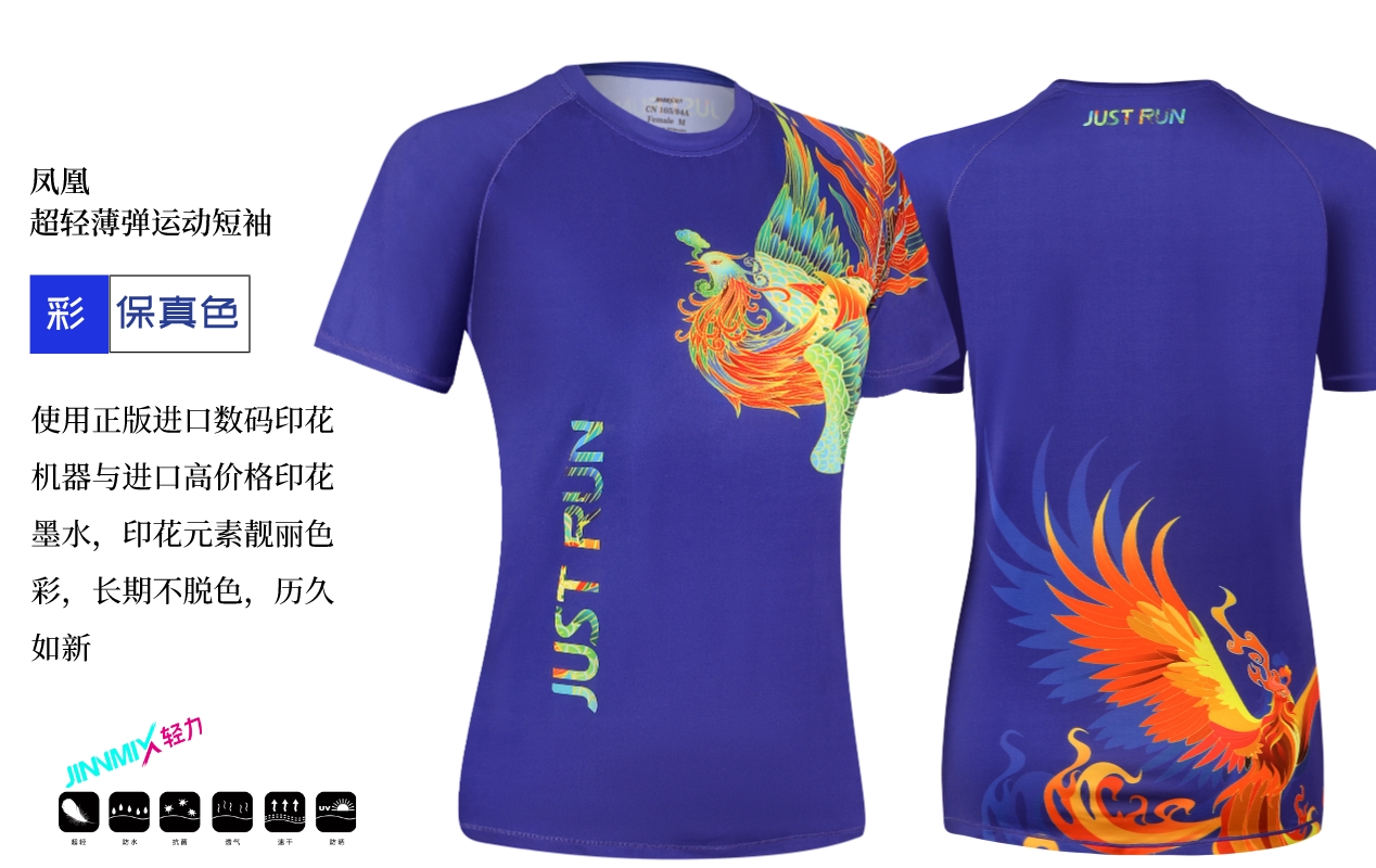 名称:轻力凤凰轻薄透软弹贴运动短袖