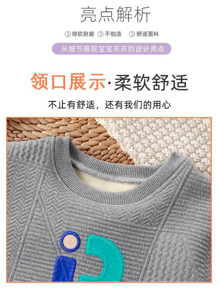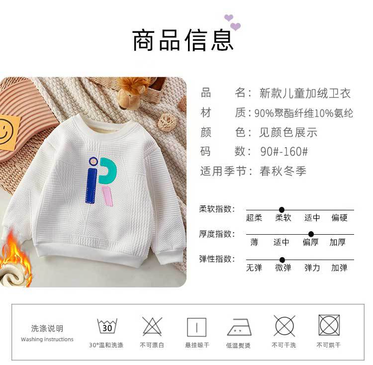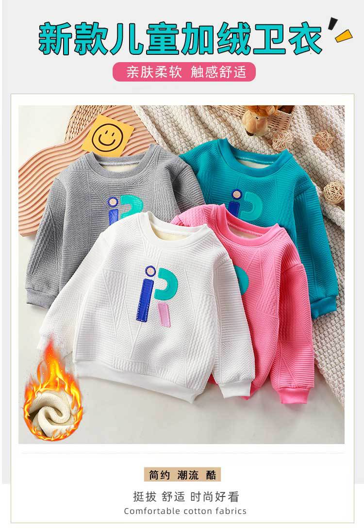 加绒加厚儿童一体绒厚实休闲卫衣2023中大童加厚卫衣秋冬保暖卫衣_HLY