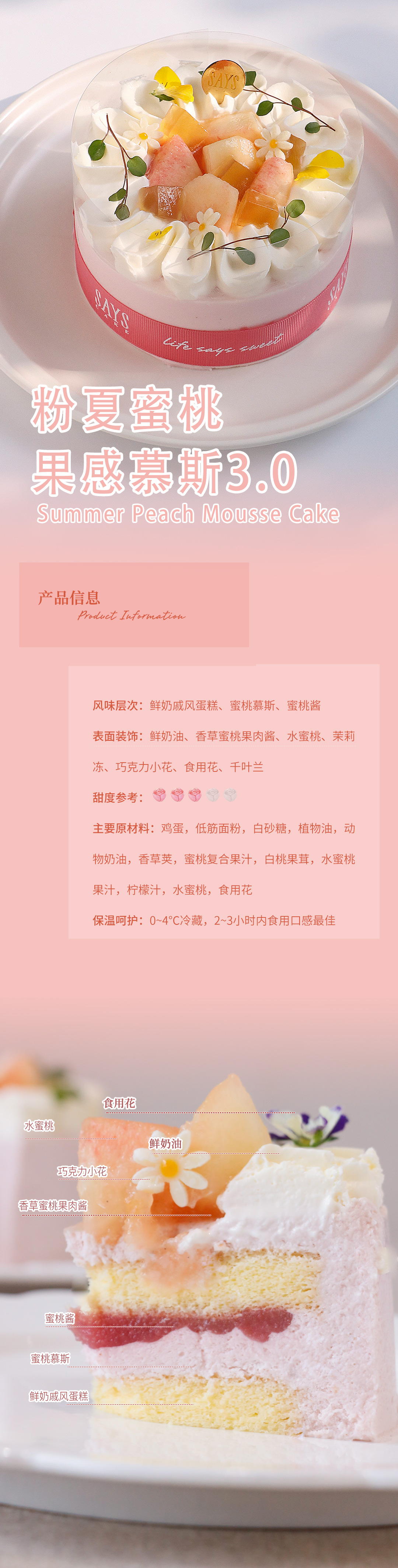 【节日限定】粉夏蜜桃果感慕斯3.0 Summer Peach Mousse Cake