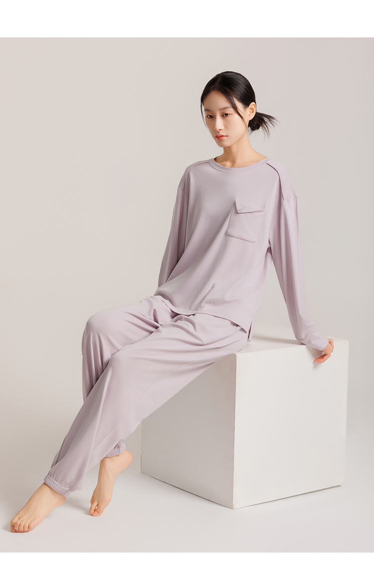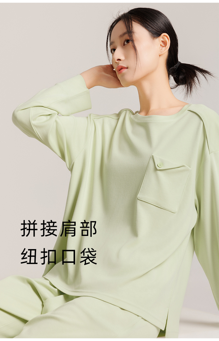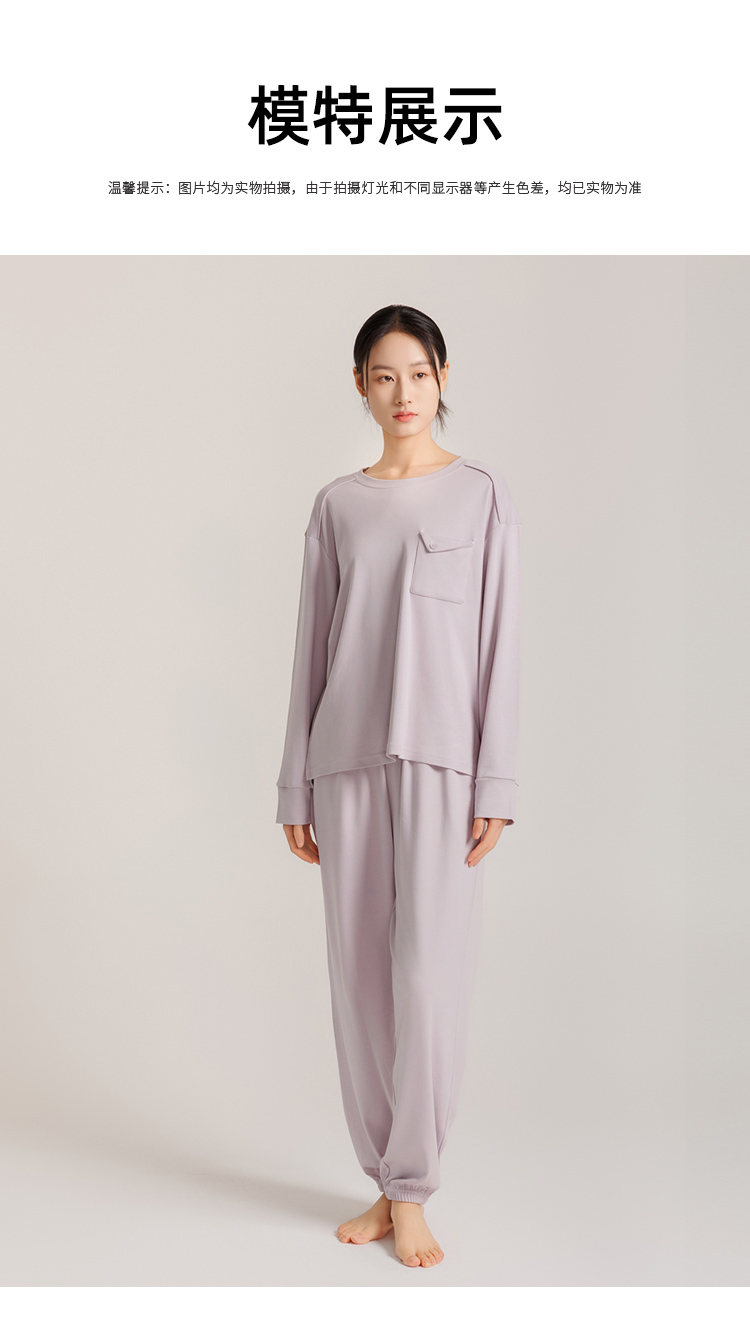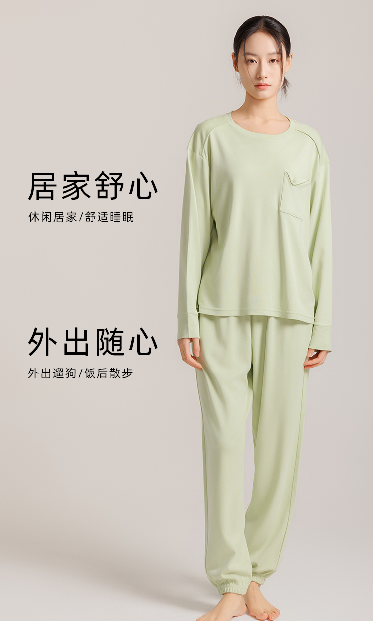 weyo秋季新款女士舒适宽松睡衣他装舒感棉休闲口袋长袖家居服套装50705