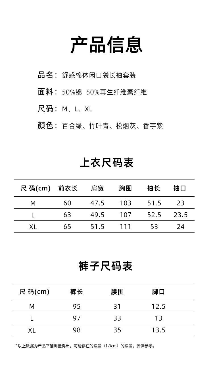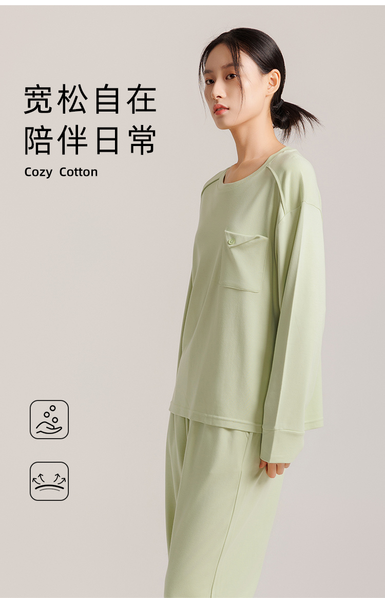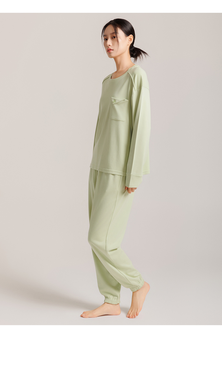 weyo秋季新款女士舒适宽松睡衣他装舒感棉休闲口袋长袖家居服套装50705