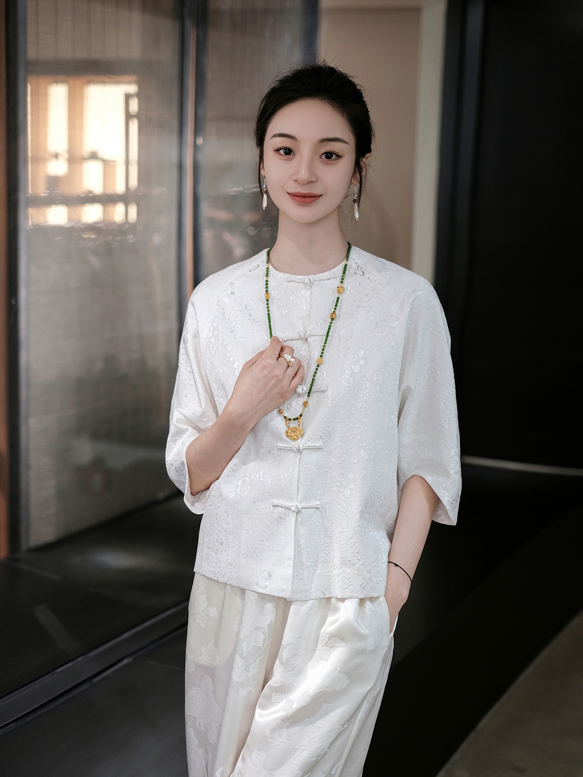 盛唐婧 |丝麻提花圆领小外套-白色
