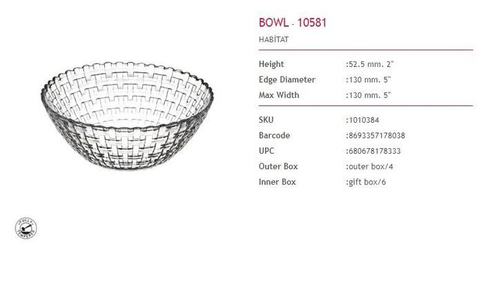 帕莎[10581]竹篮系列钢化玻璃餐碗(130mm)