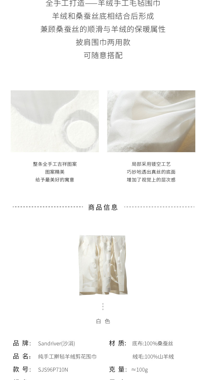 纯手工擀毡羊绒剪花围巾SJS96P710N