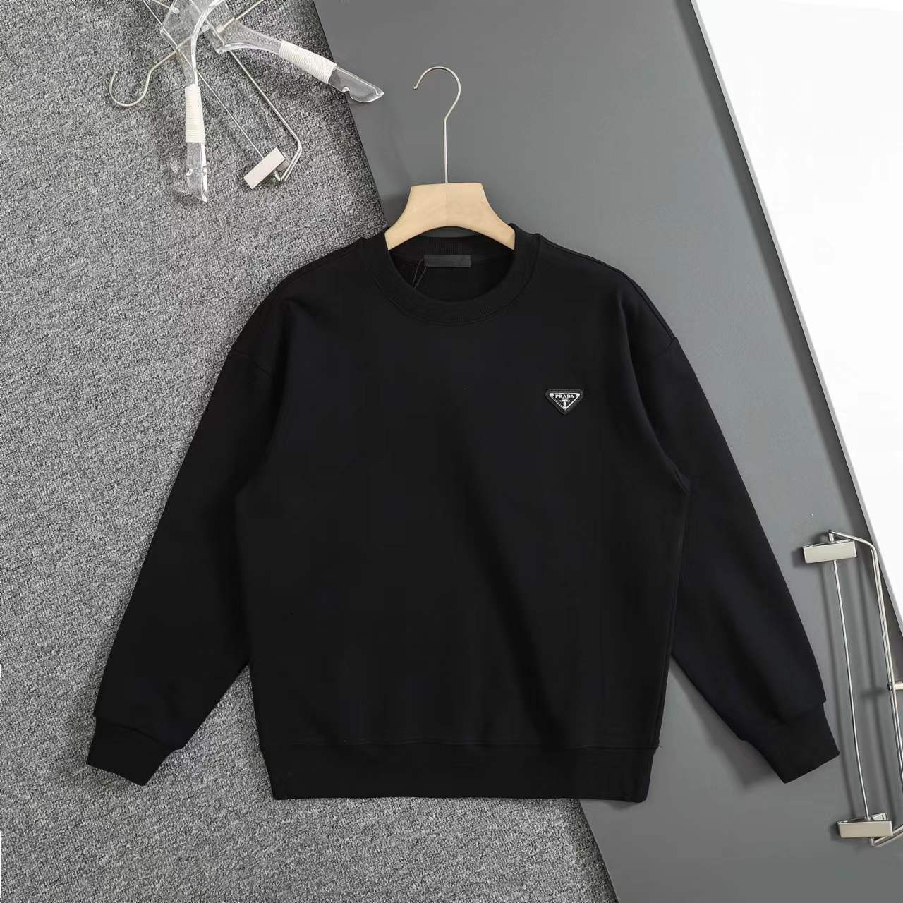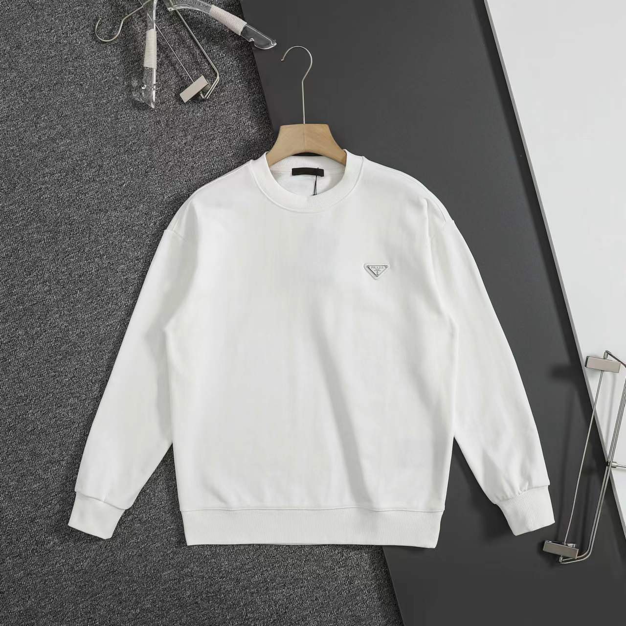 圆领卫衣 男女日常通勤穿搭b备单品 采用480克重磅纯棉水洗面料 重工割破贴布绣花定制原厂金属三角标