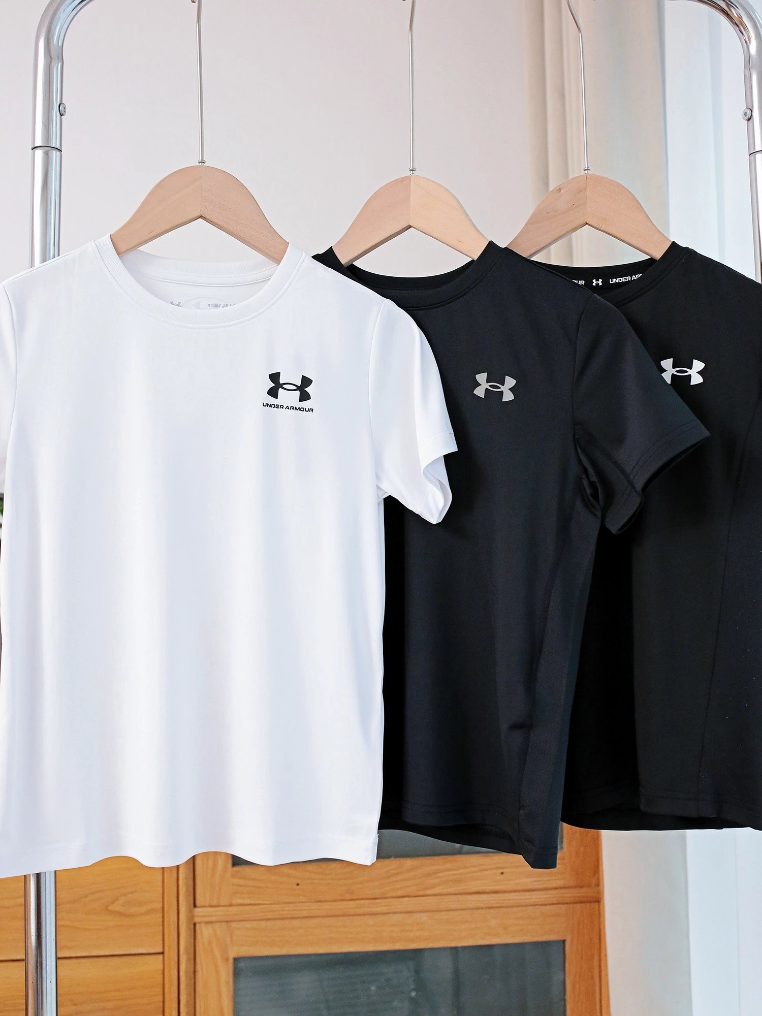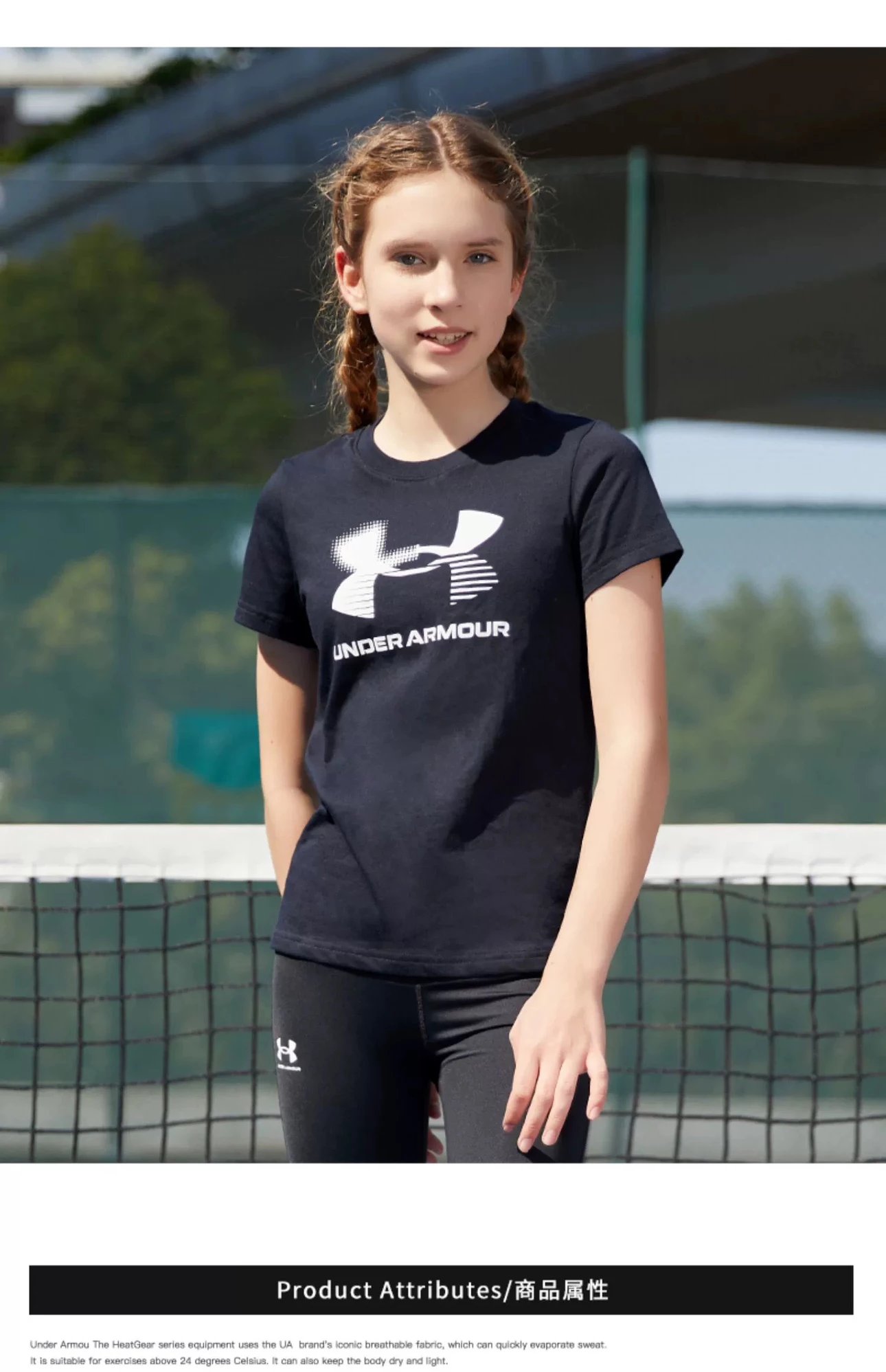 亲肤又有型!经过科学配比的棉料材质,触感柔软又透气,版型nice不易皱,吸湿又排汗,运动后清爽不闷,白色系清新百搭,胸前粉色大logo时尚有个性!搭配UA黑色短裤,唤醒宝贝活力,尽情运动玩耍肆意舒展四肢!