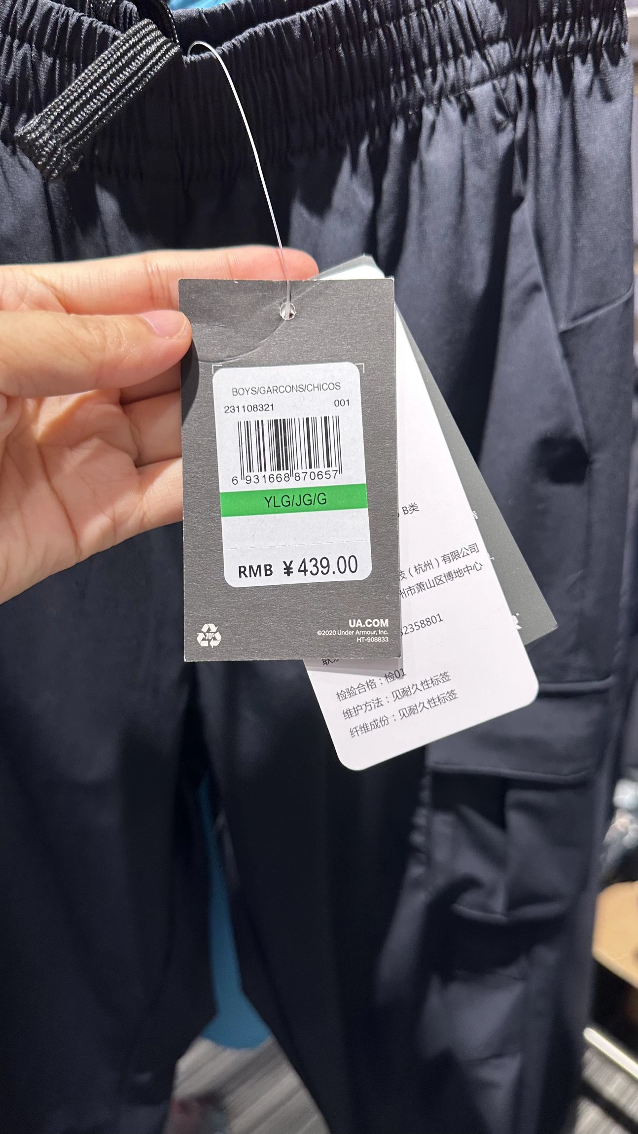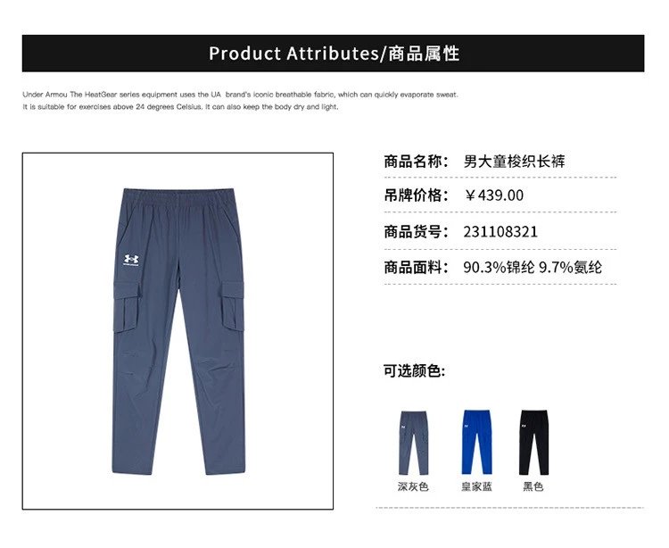 款式:安德玛儿童速干裤中大童工装裤