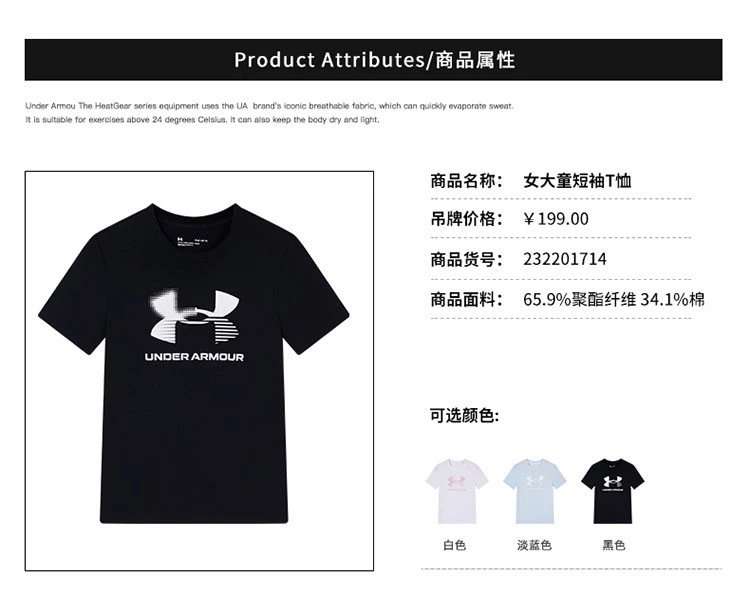 款式:安德玛儿童男女童短袖T恤春夏季新款轻薄短袖升级版速干T恤