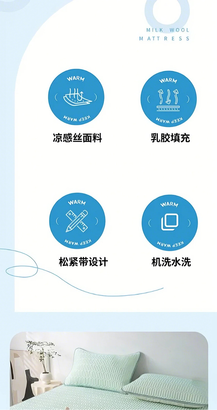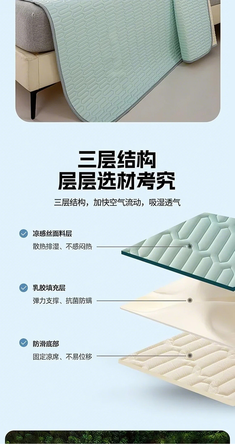 【开启清凉一“夏”❗️夏季冰丝凉席】凉感丝面料制作,多孔纤维结构 增加空气内外循环,舒爽透气不黏腻,床垫保护罩新款床套可水洗宿舍乳胶床单套单L