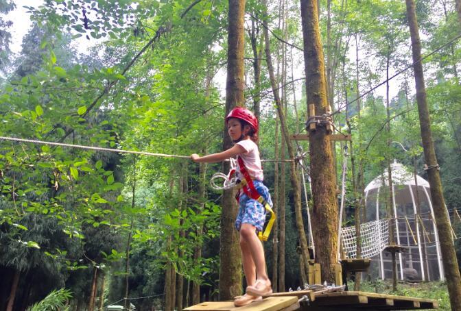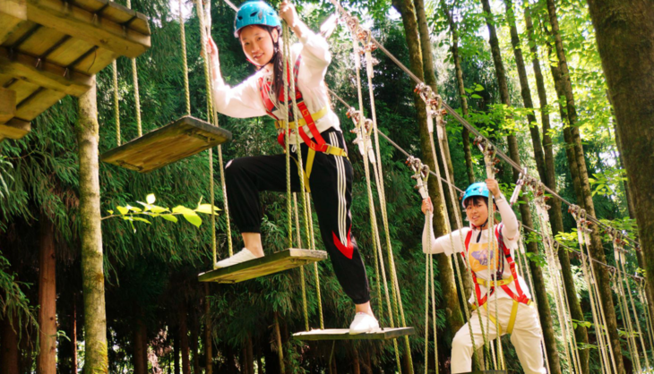 天梯、滑索、攀岩墙、轮胎桥……穿越过程中,游客需通过悬空桥梁、网道、步道、秋千、索道和其他趣味方式进行林间冒险,通过爬、滑、跨、跳、飞等方式越过所有障碍,到达终点。